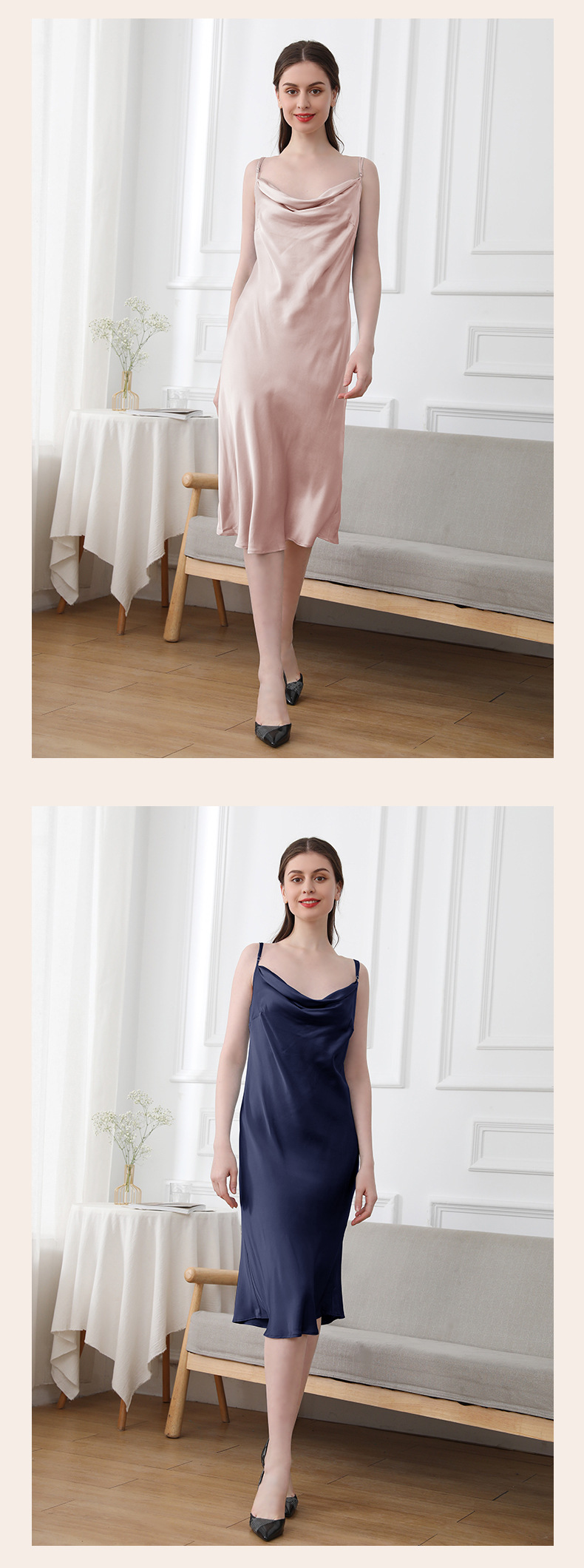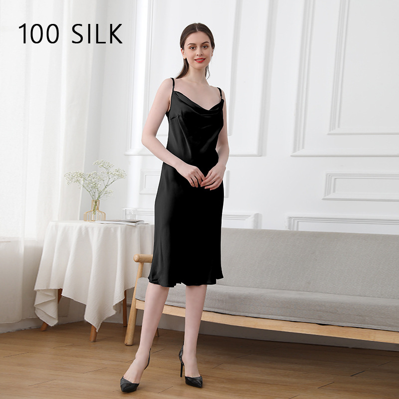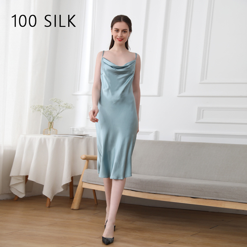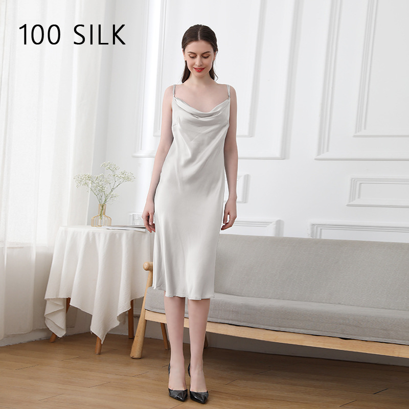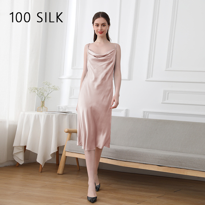 19mm 실크 슬립 드레스 여성용 25 여름 얇은 100% 뽕나무 실크 잠옷 외출용 긴 홈웨어
