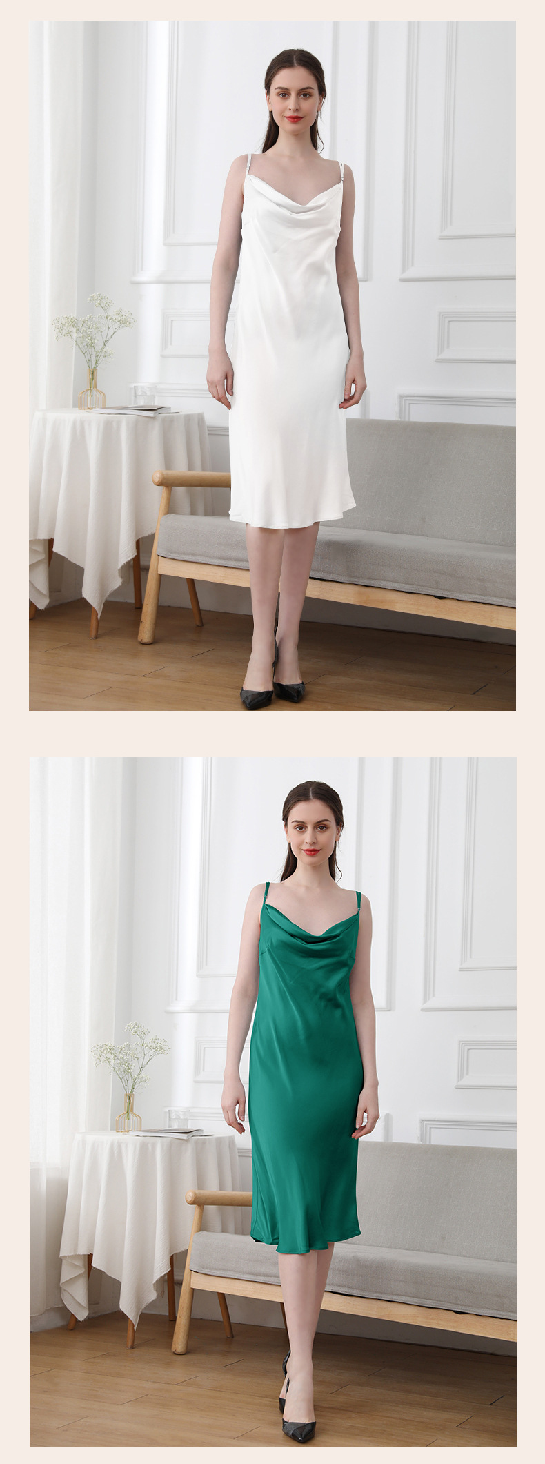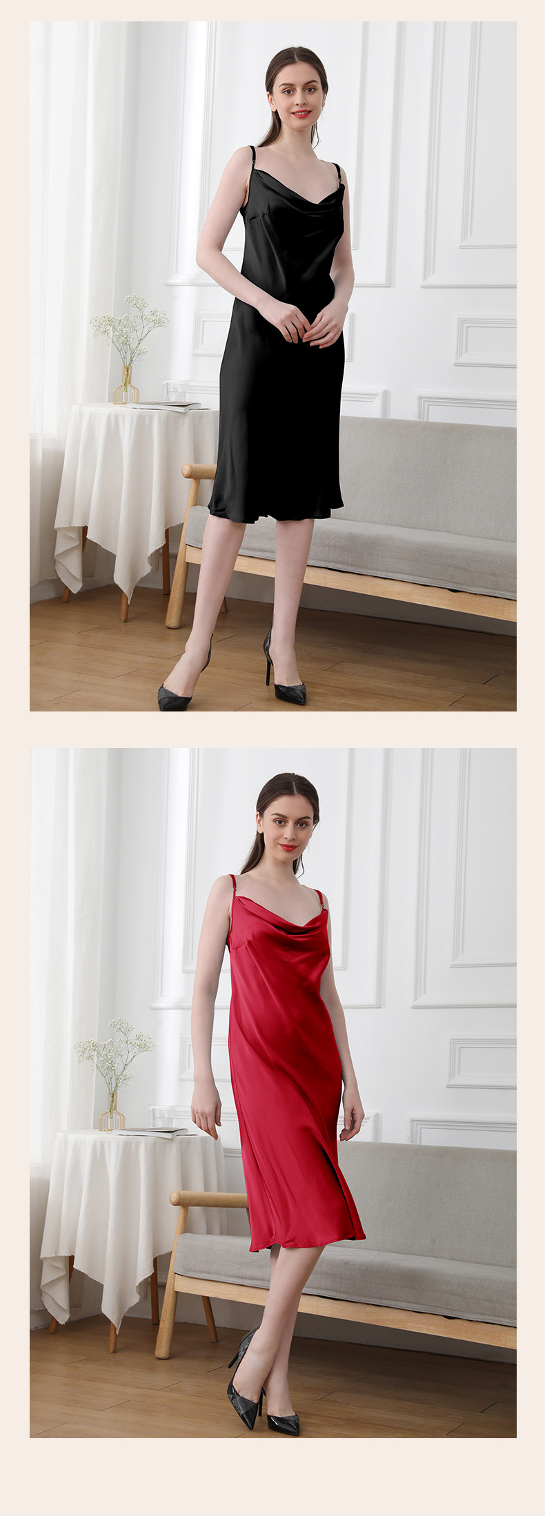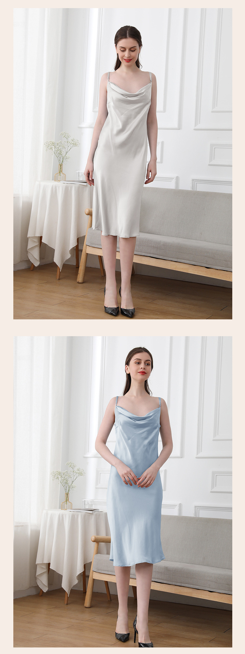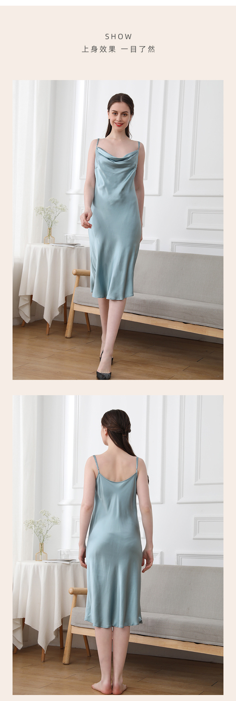 19mm 실크 슬립 드레스 여성용 25 여름 얇은 100% 뽕나무 실크 잠옷 외출용 긴 홈웨어