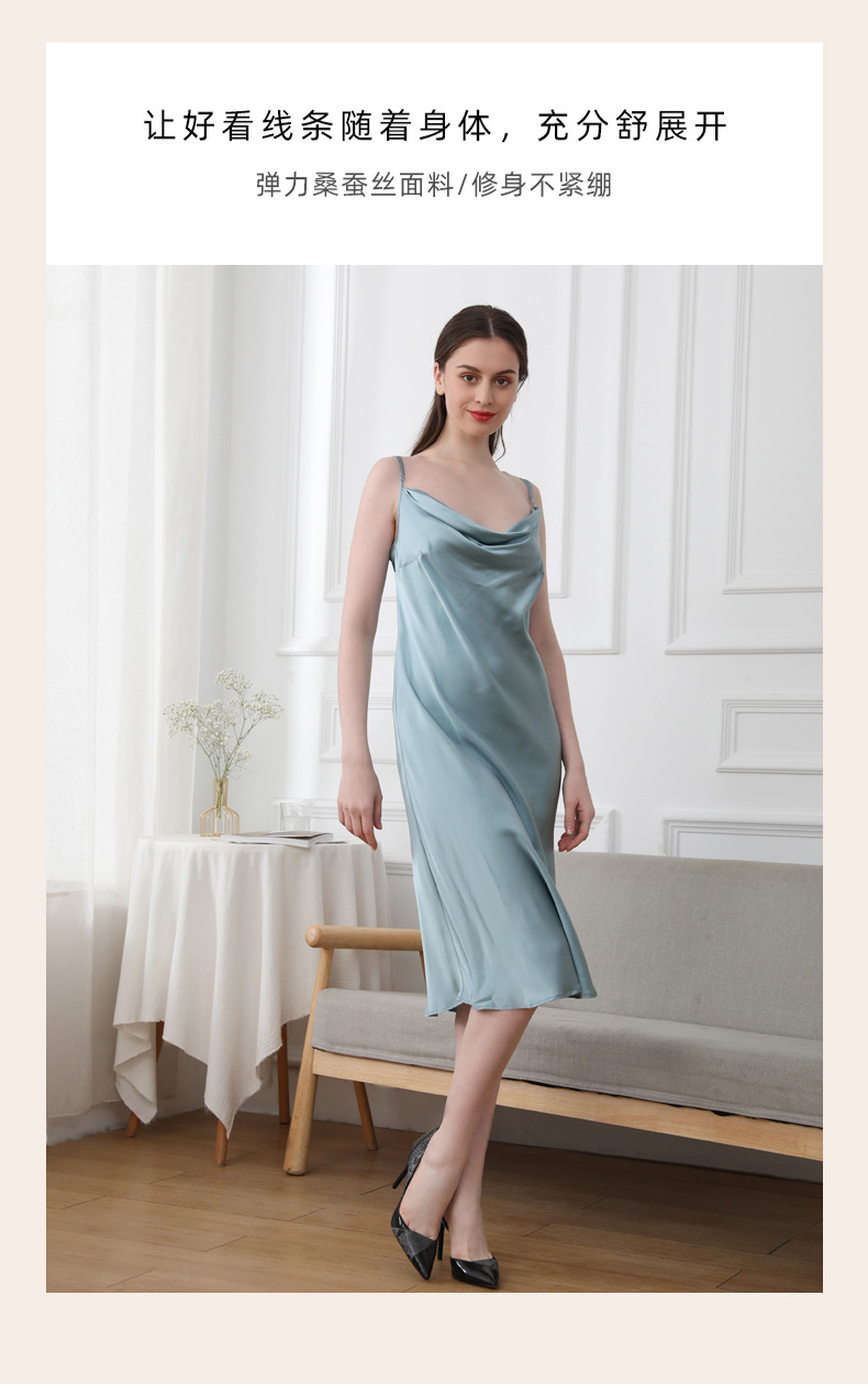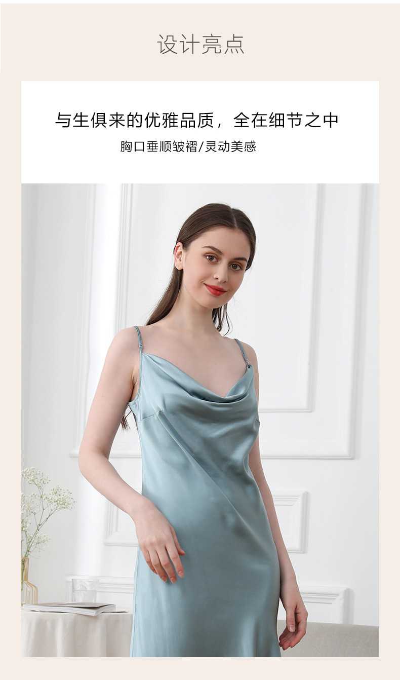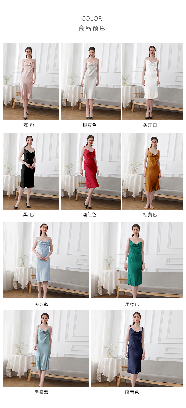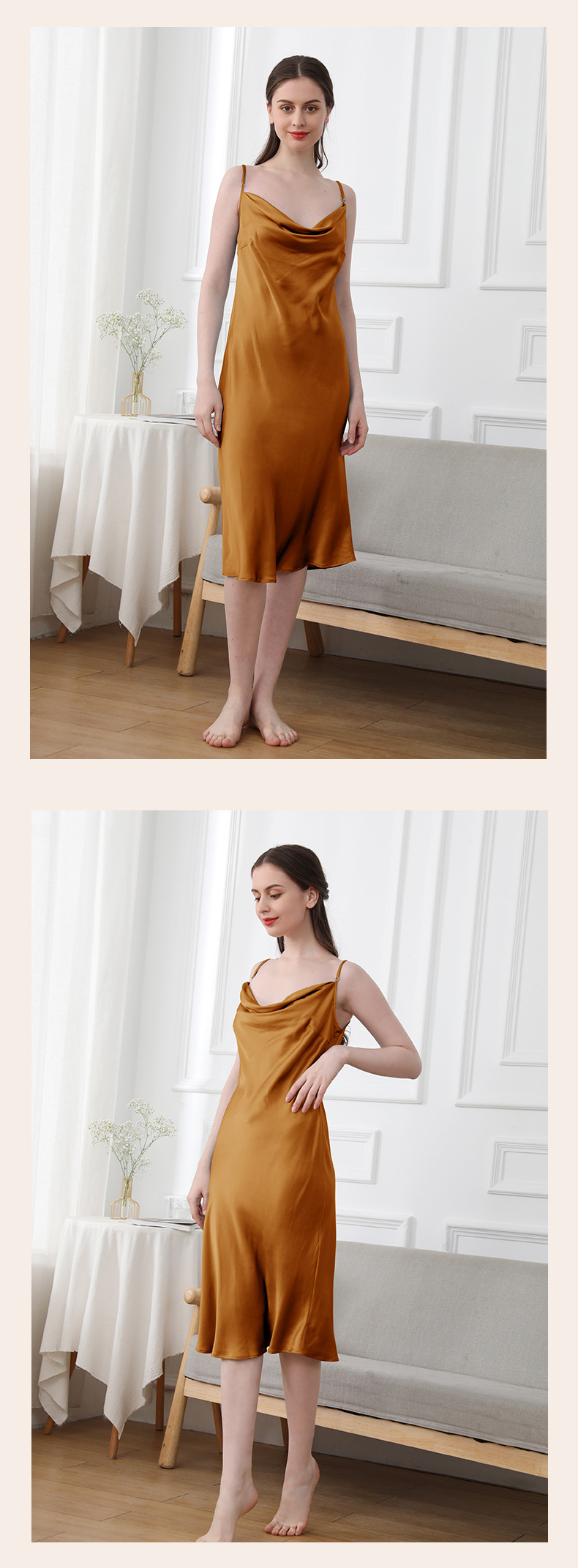 19mm 실크 슬립 드레스 여성용 25 여름 얇은 100% 뽕나무 실크 잠옷 외출용 긴 홈웨어