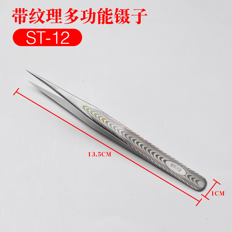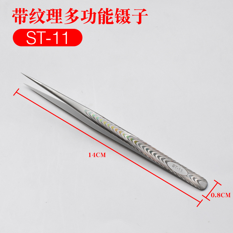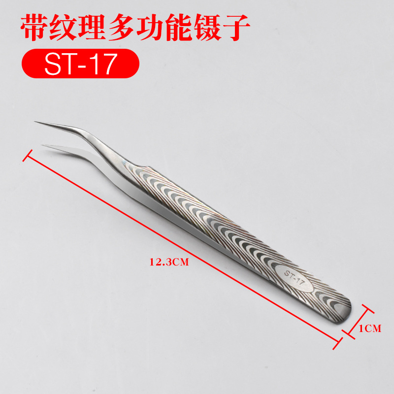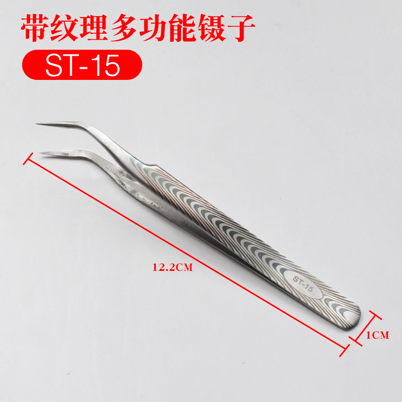 도매 1.5mm 스테인레스 스틸 자기 방지 핀셋 물고기 패턴 팔꿈치 뾰족한 입 속눈썹 이식 클립 고정밀 꽃 핀셋