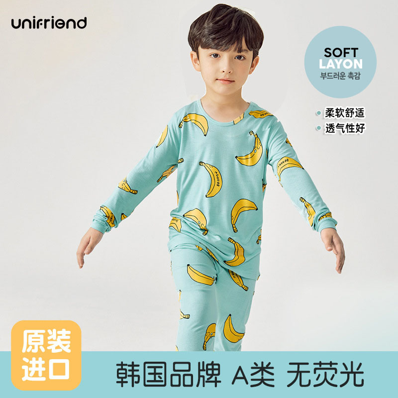 유니프렌드 한국 봄 여름 새로운 어린이 가정복 남자 보물 여자 보물 홈 캐주얼 롱 느슨한 세트스토어 가기