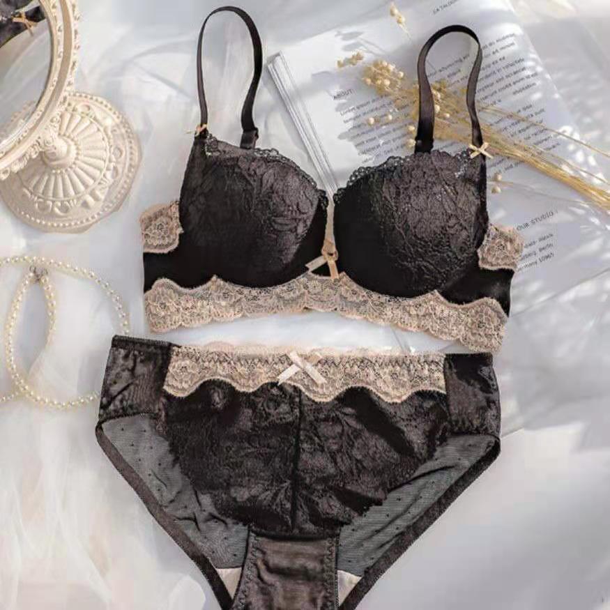 작은 가슴 푸시 업 파라메리 가슴 브라 사이드 업 비 스틸 링 탑업 조절 가능한 라텍스 속옷 브라 세트