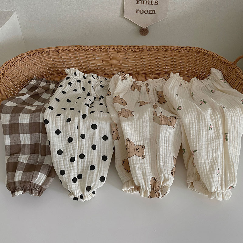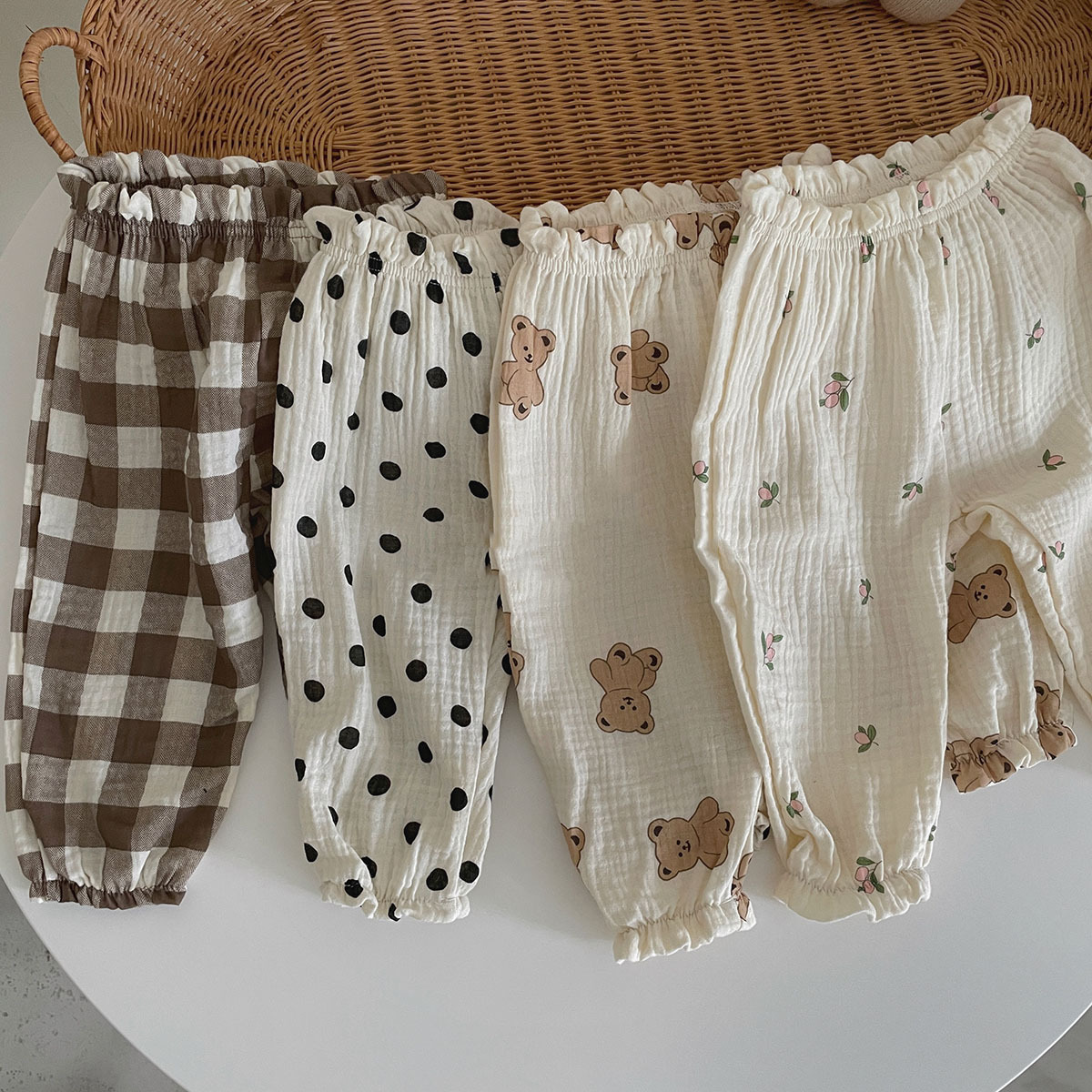 2025 봄과 여름 옷 남성과 여성의 아기 만화 인쇄 바지 캐주얼 겉옷 얇은 모기 방지 바지 어린이 면화 바지스토어 가기
