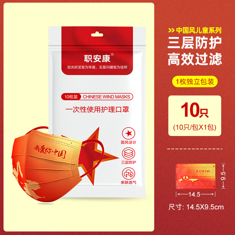 어린이용 마스크 6-12세 개별 포장 I Love You 중국 빨간색 마스크 국가 트렌드 어린이 일회용 마스크 성인스토어 가기