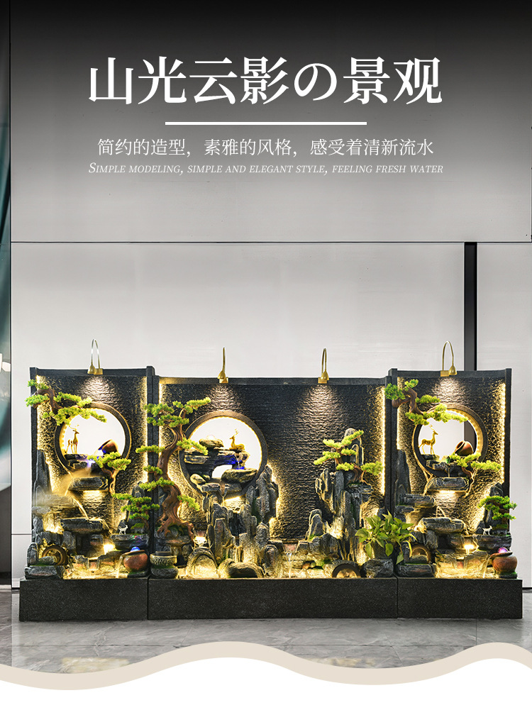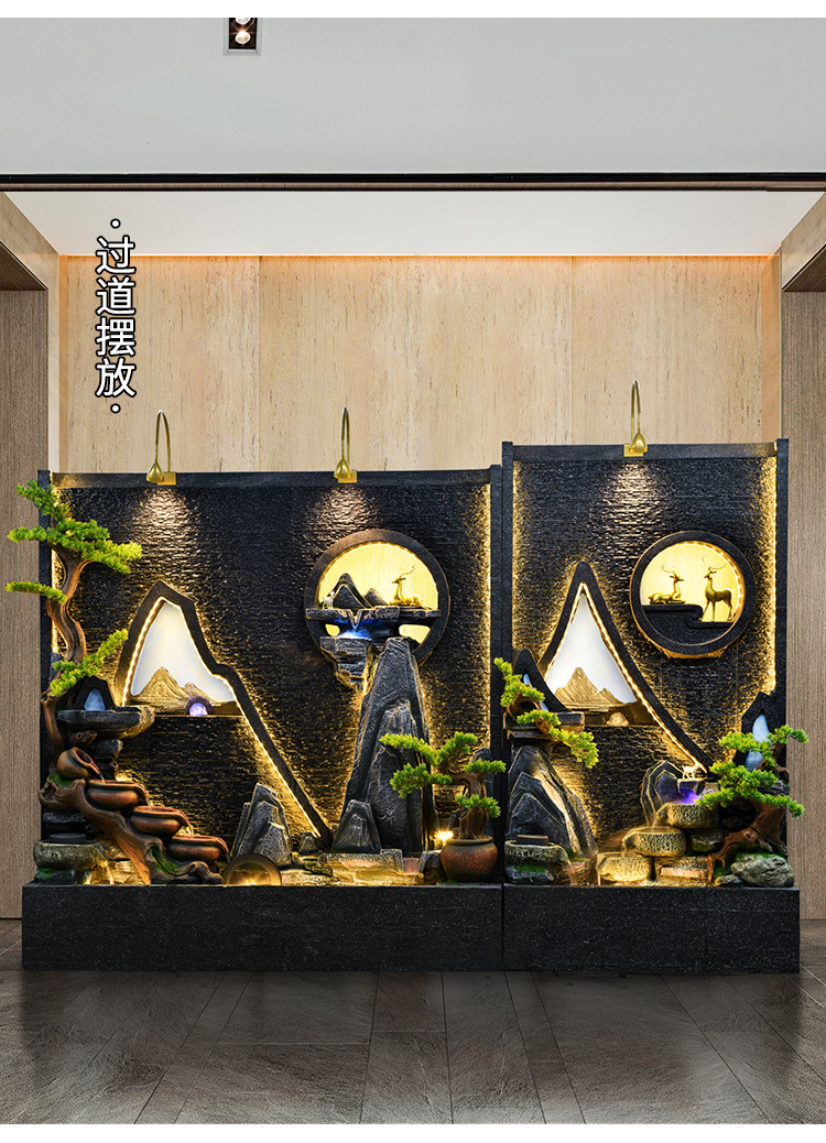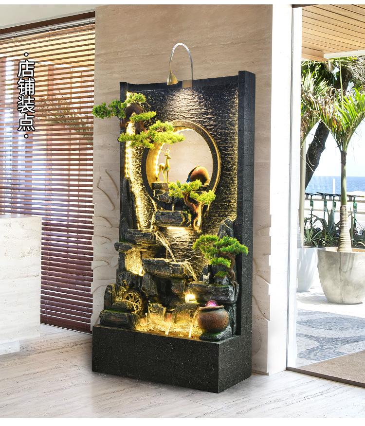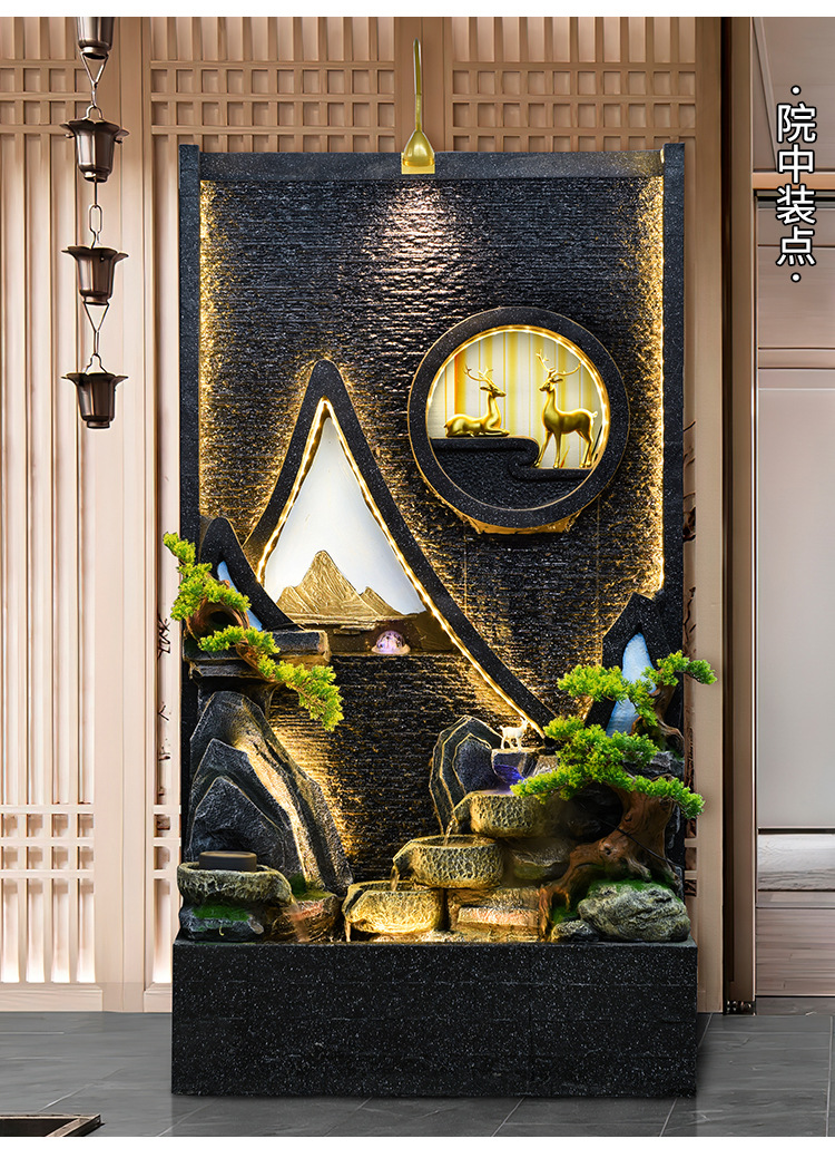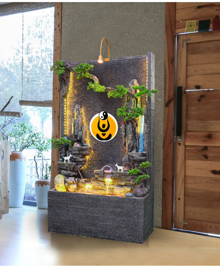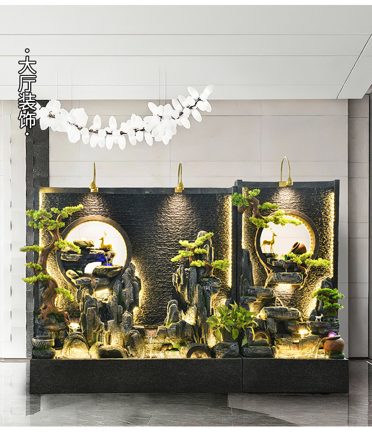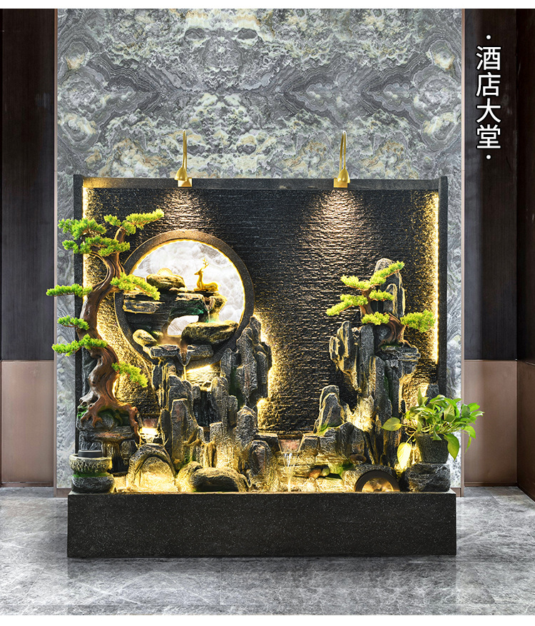 대형 워터 커튼 월, 흐르는 물 분수, 바위, 항아리, 장식, 호텔 사무실, 거실, 행운, 풍수 바퀴, 풍경스토어 가기