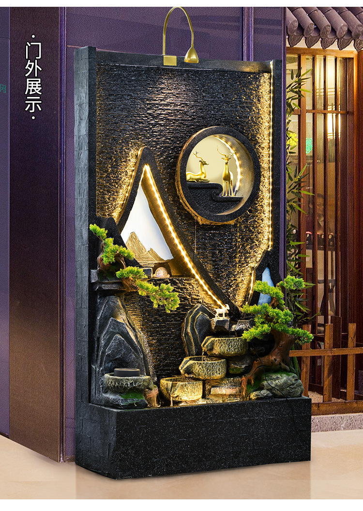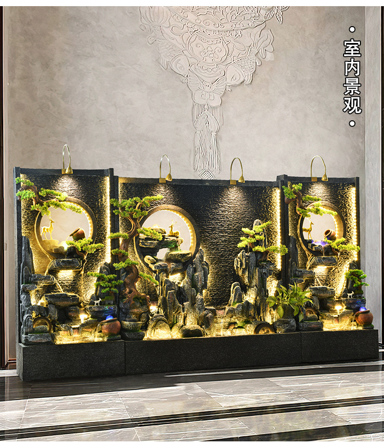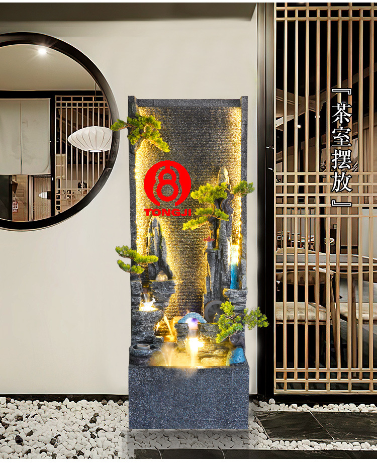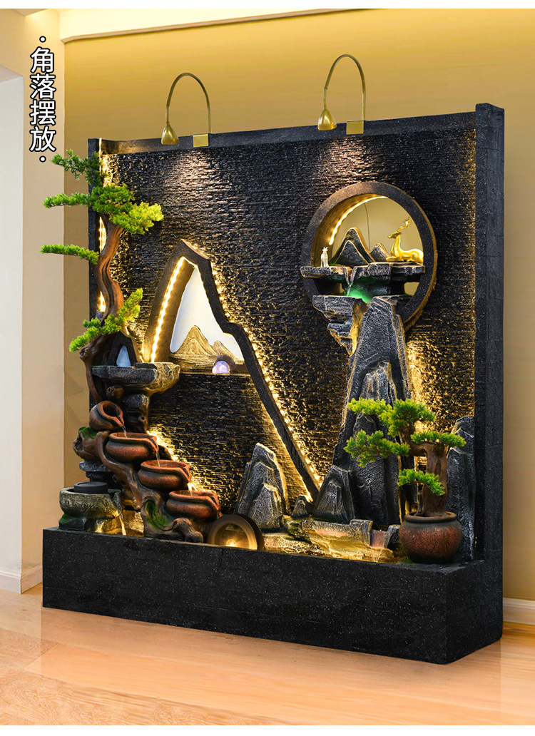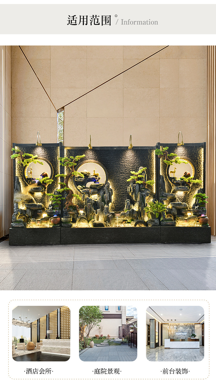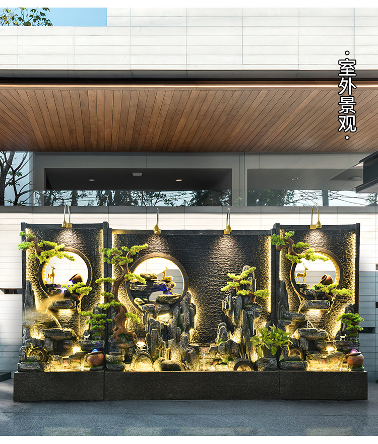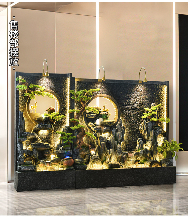 대형 워터 커튼 월, 흐르는 물 분수, 바위, 항아리, 장식, 호텔 사무실, 거실, 행운, 풍수 바퀴, 풍경스토어 가기