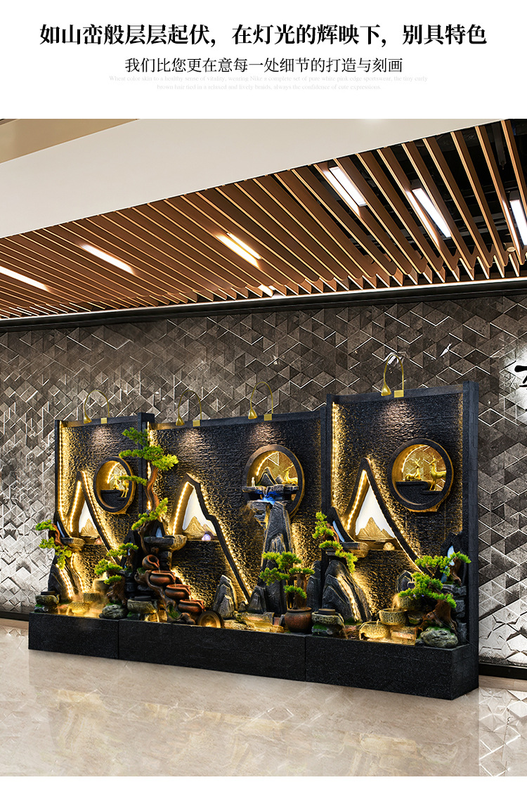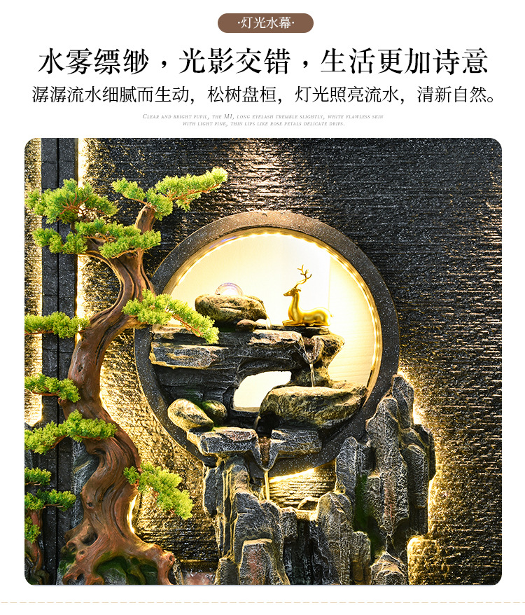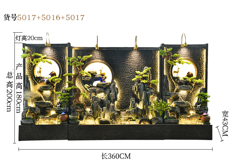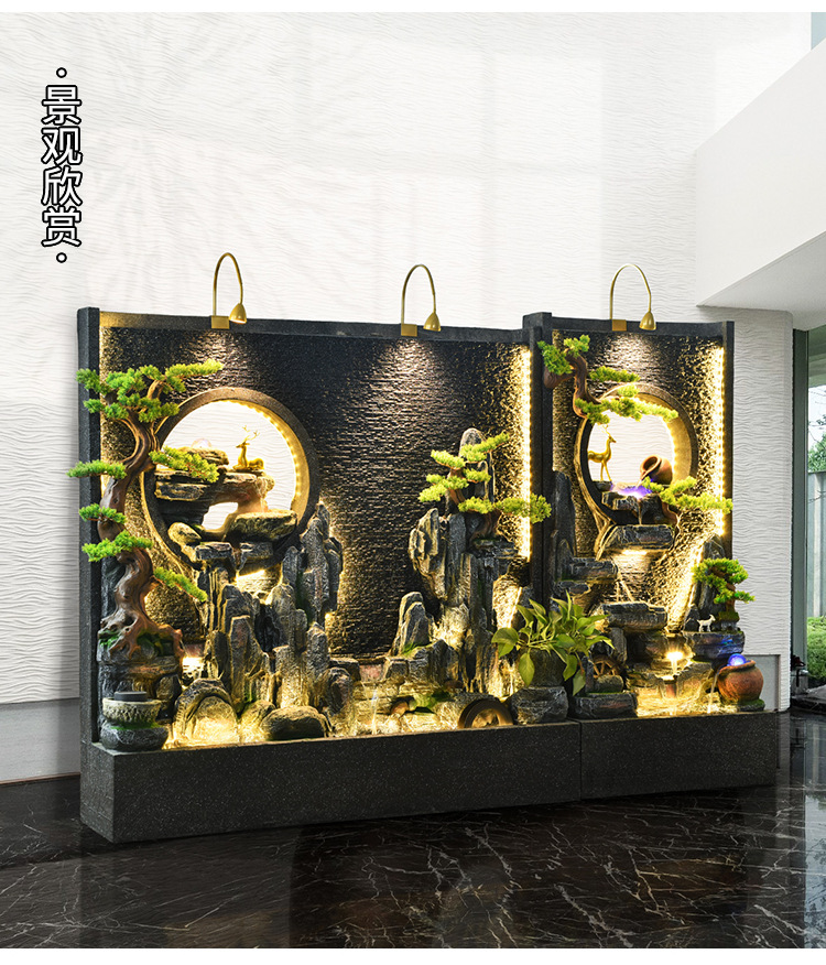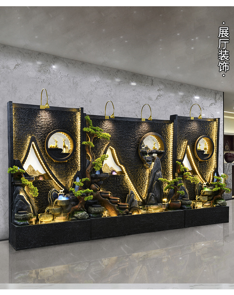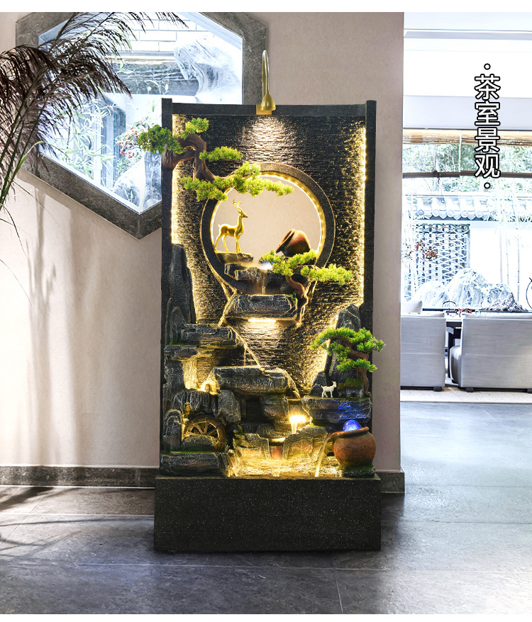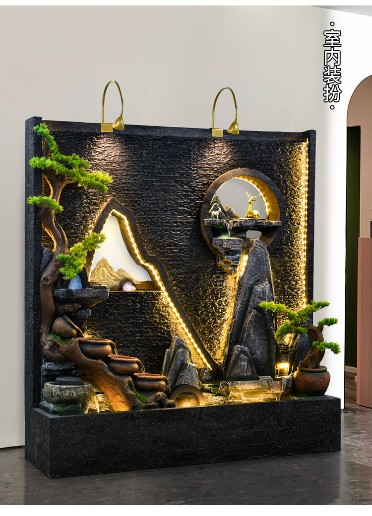 대형 워터 커튼 월, 흐르는 물 분수, 바위, 항아리, 장식, 호텔 사무실, 거실, 행운, 풍수 바퀴, 풍경스토어 가기
