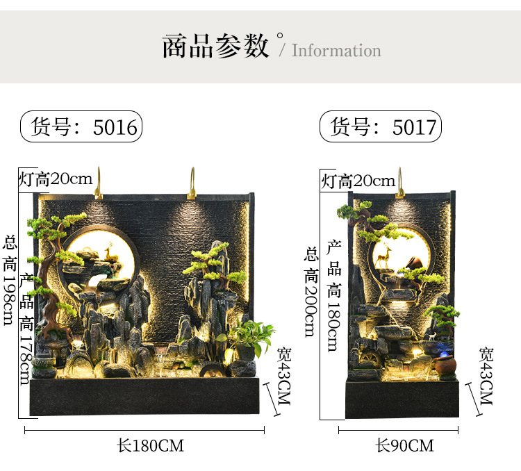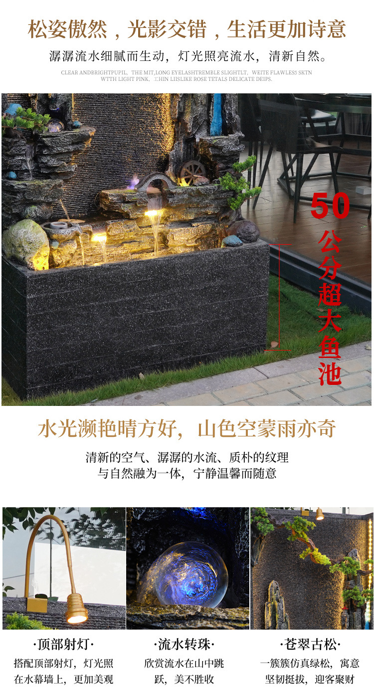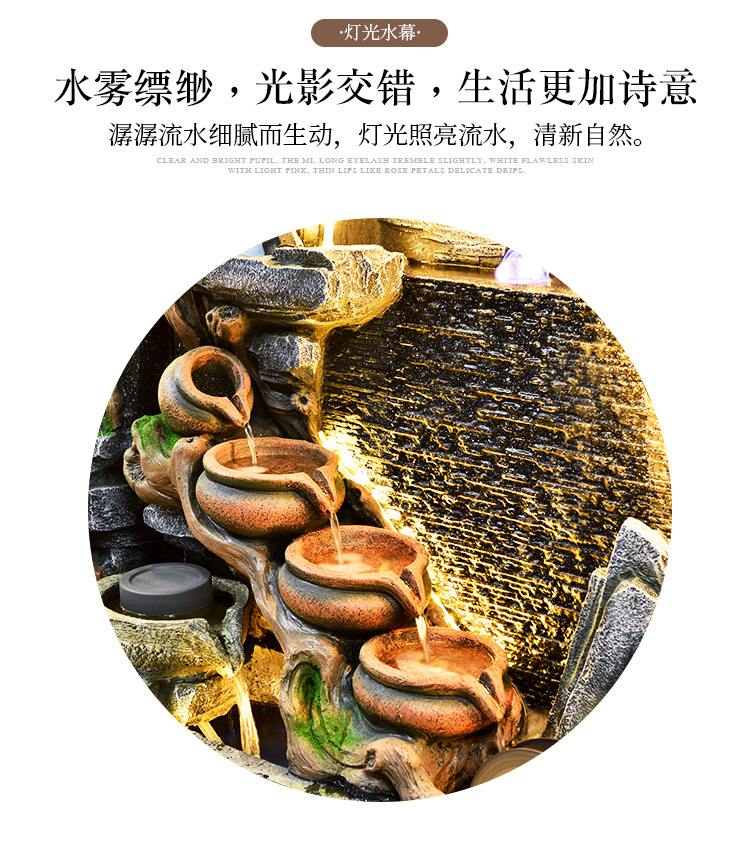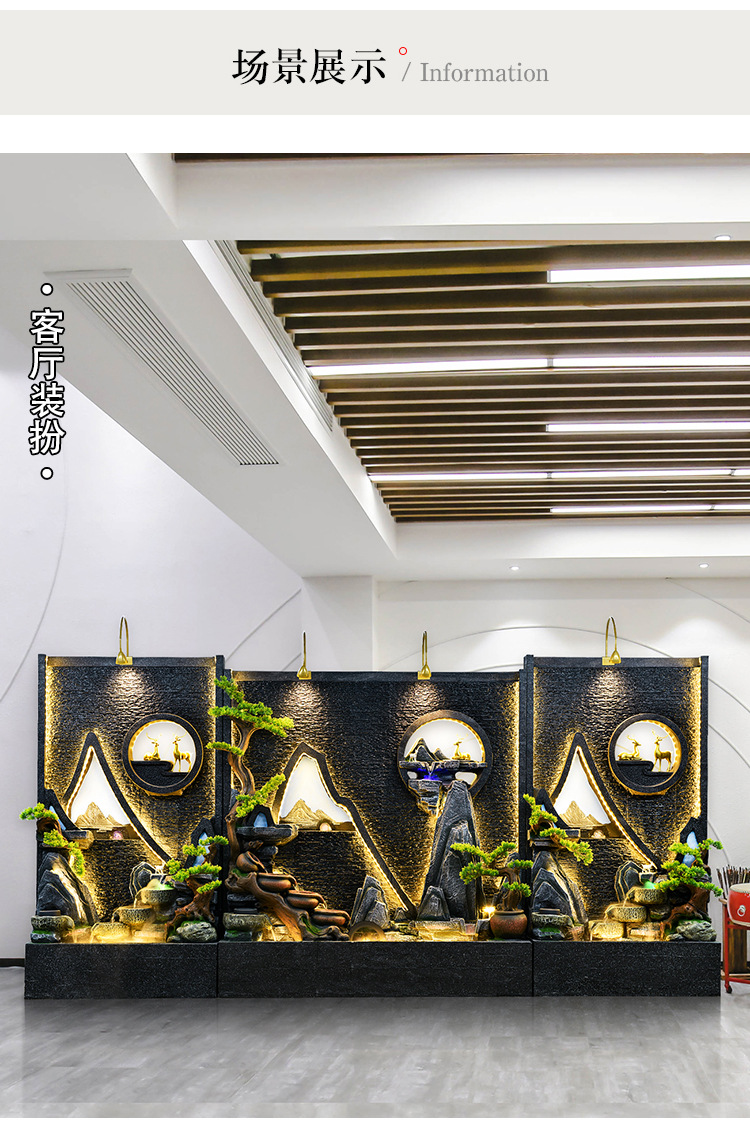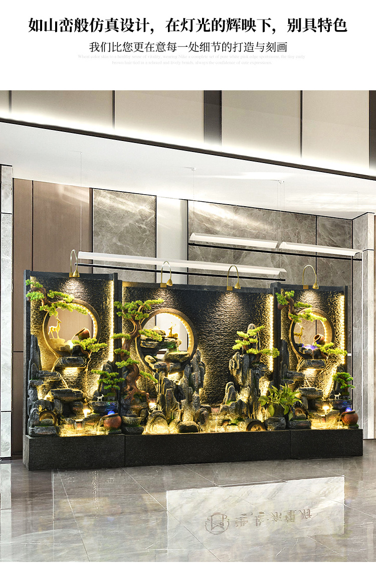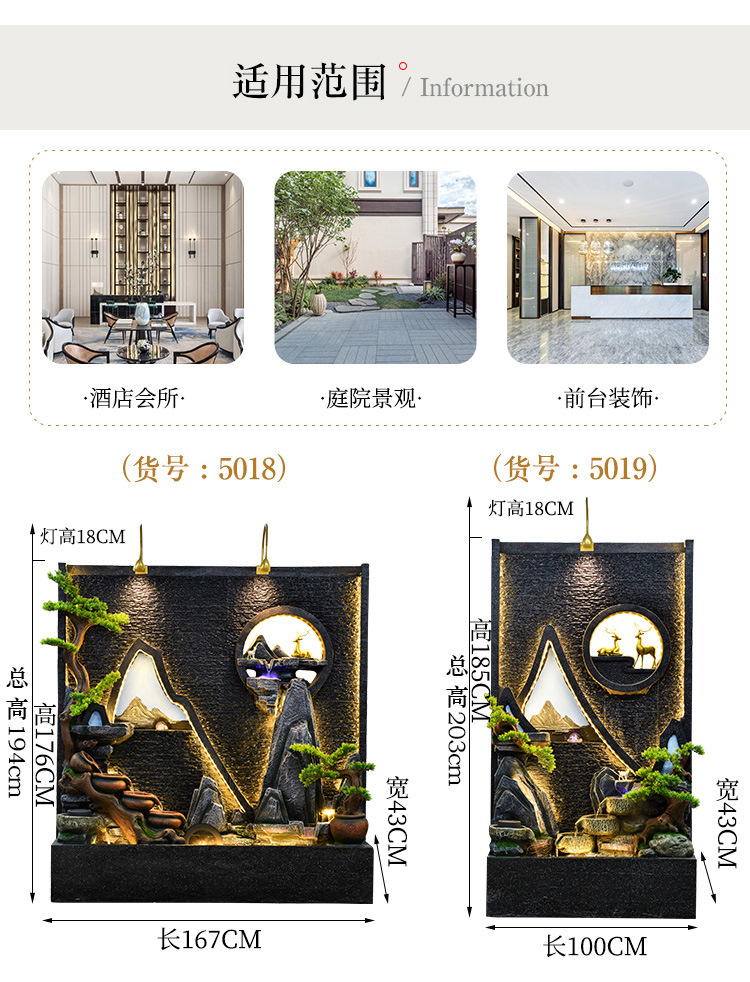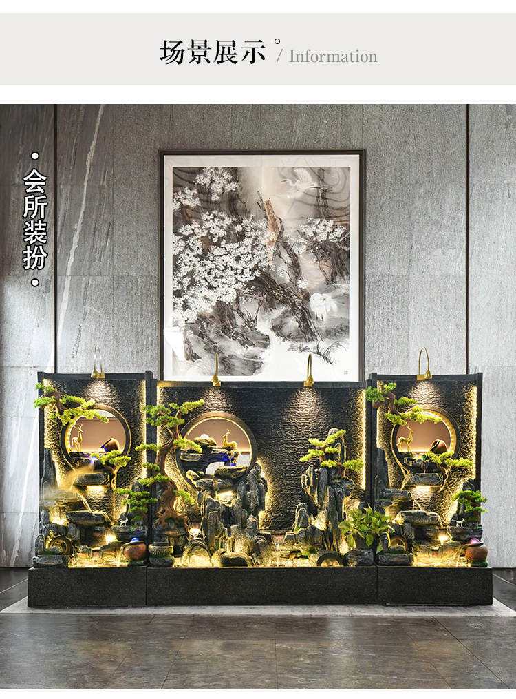 대형 워터 커튼 월, 흐르는 물 분수, 바위, 항아리, 장식, 호텔 사무실, 거실, 행운, 풍수 바퀴, 풍경스토어 가기