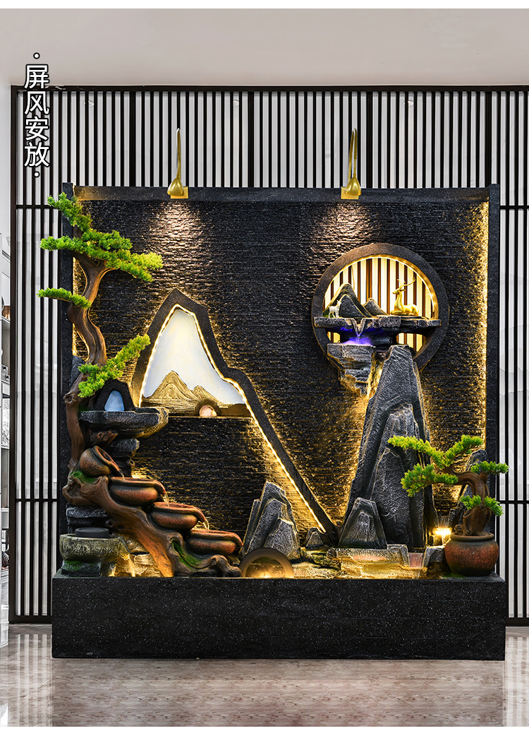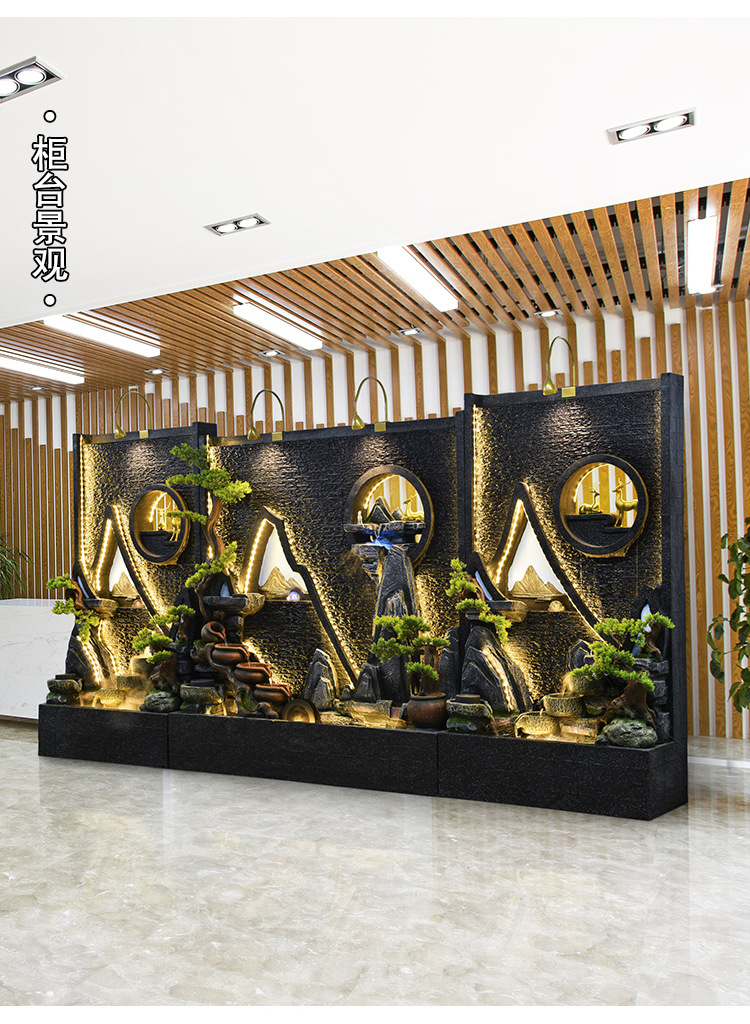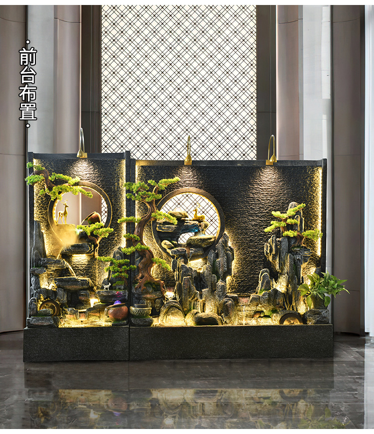 대형 워터 커튼 월, 흐르는 물 분수, 바위, 항아리, 장식, 호텔 사무실, 거실, 행운, 풍수 바퀴, 풍경