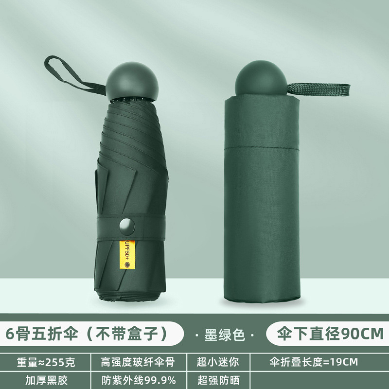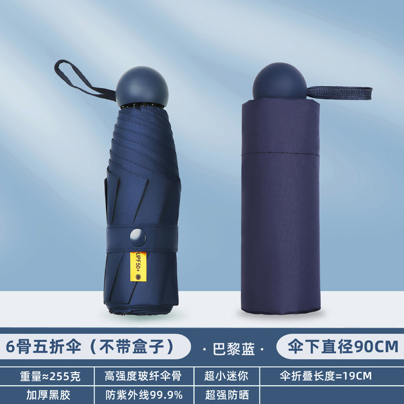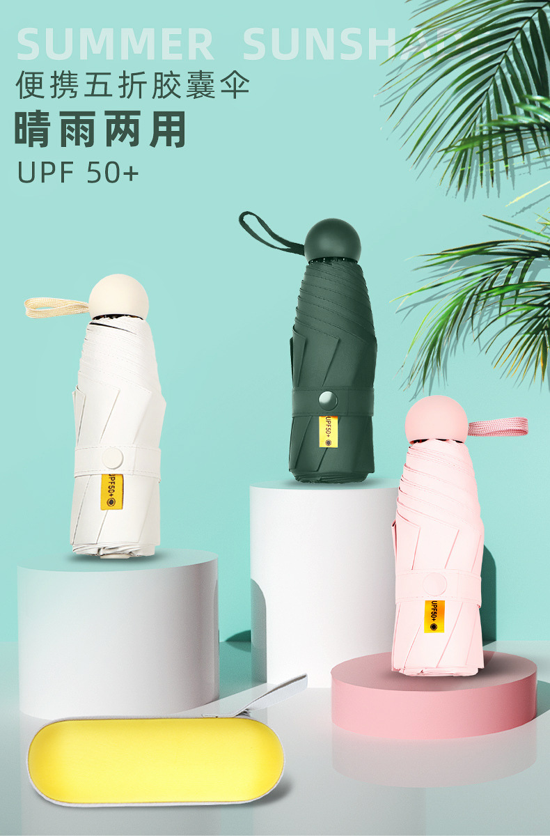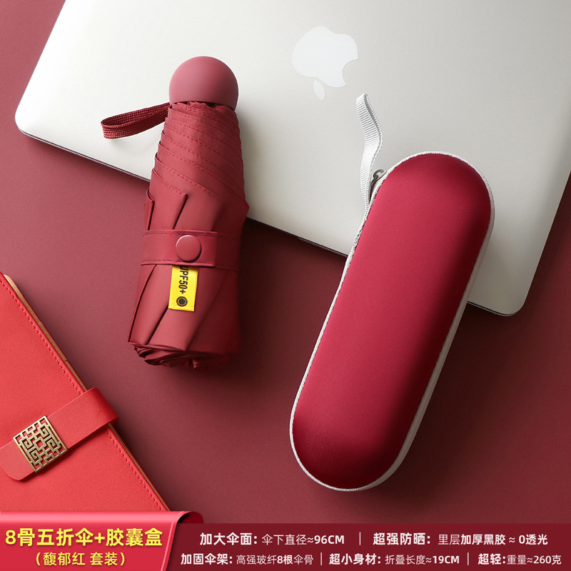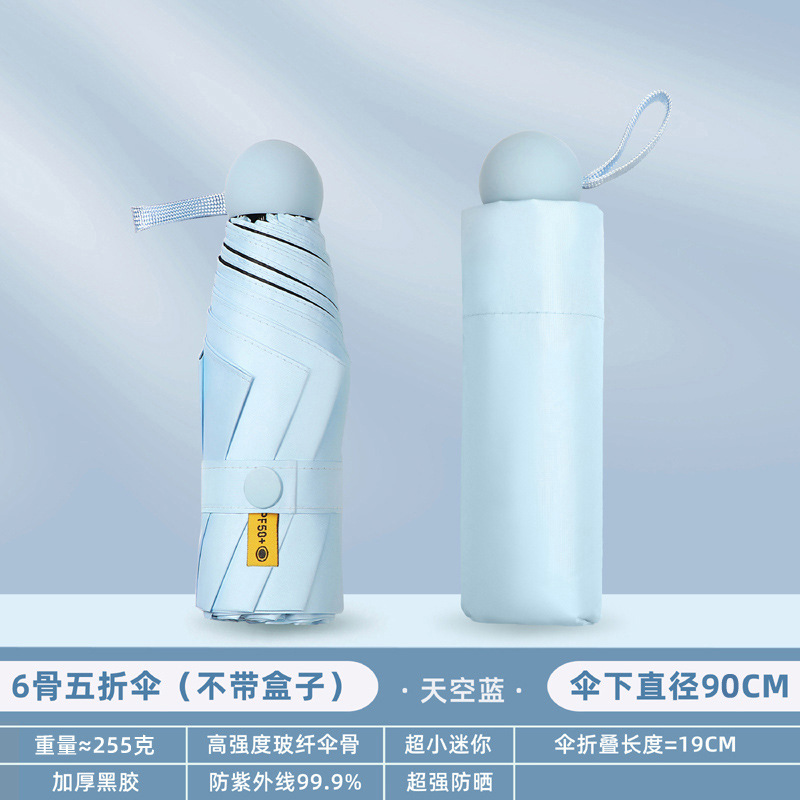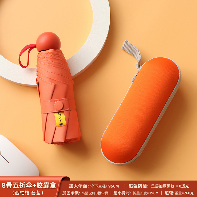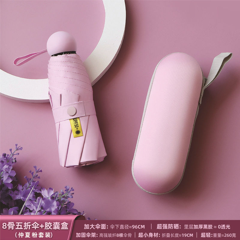포켓 캡슐 5 배 써니 우산 이중 사용 소형 휴대용 인쇄 로고 차양 태양 보호 및 여성용 자외선 차단