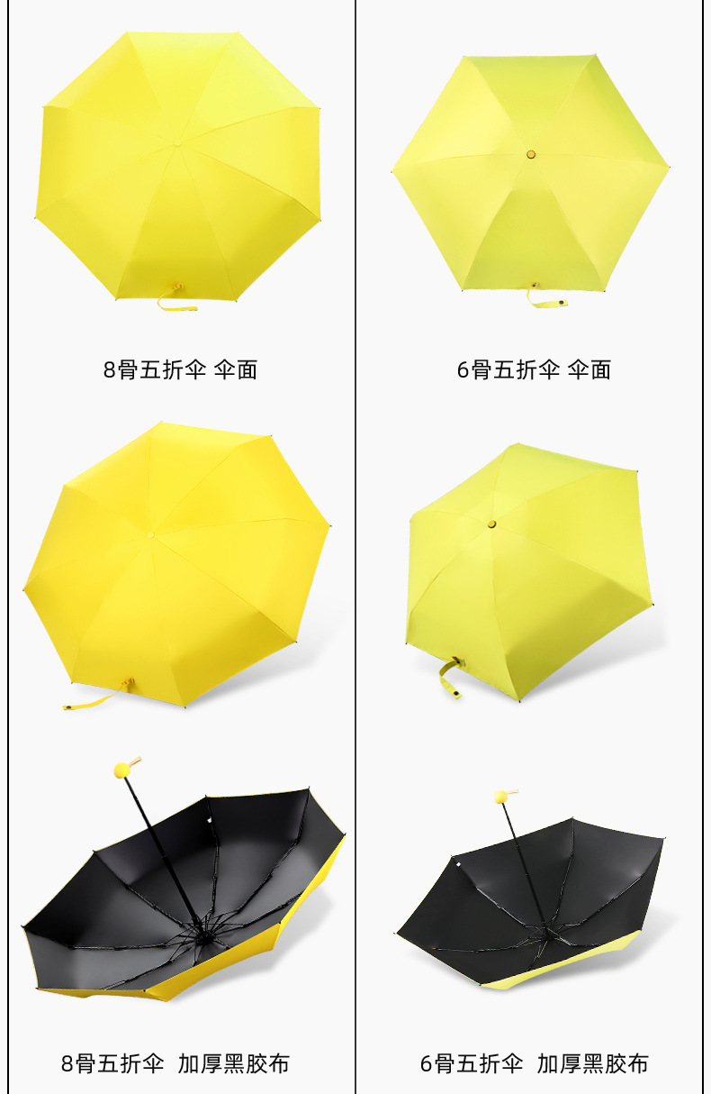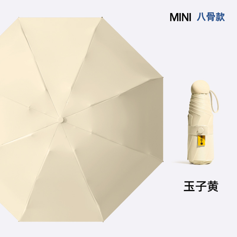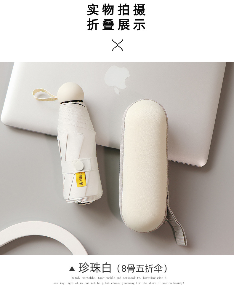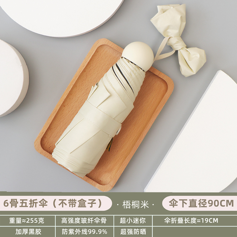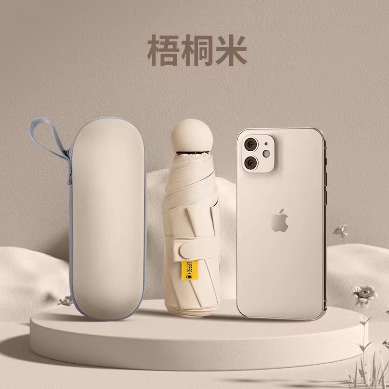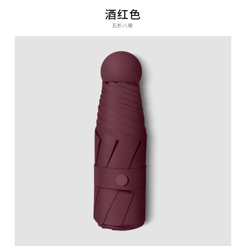 포켓 캡슐 5 배 써니 우산 이중 사용 소형 휴대용 인쇄 로고 차양 태양 보호 및 여성용 자외선 차단