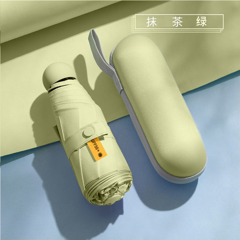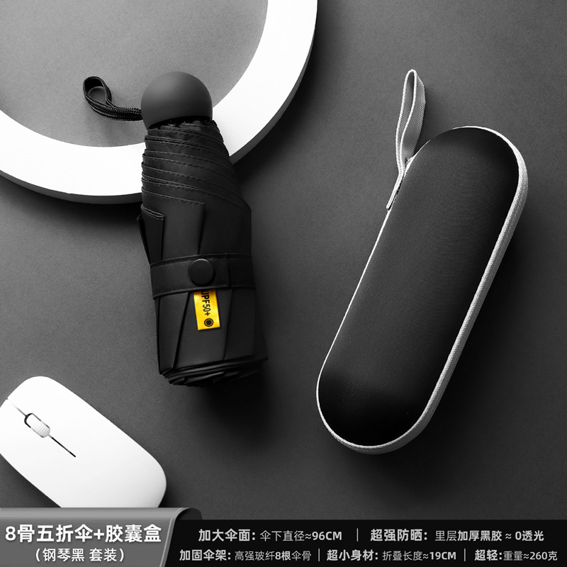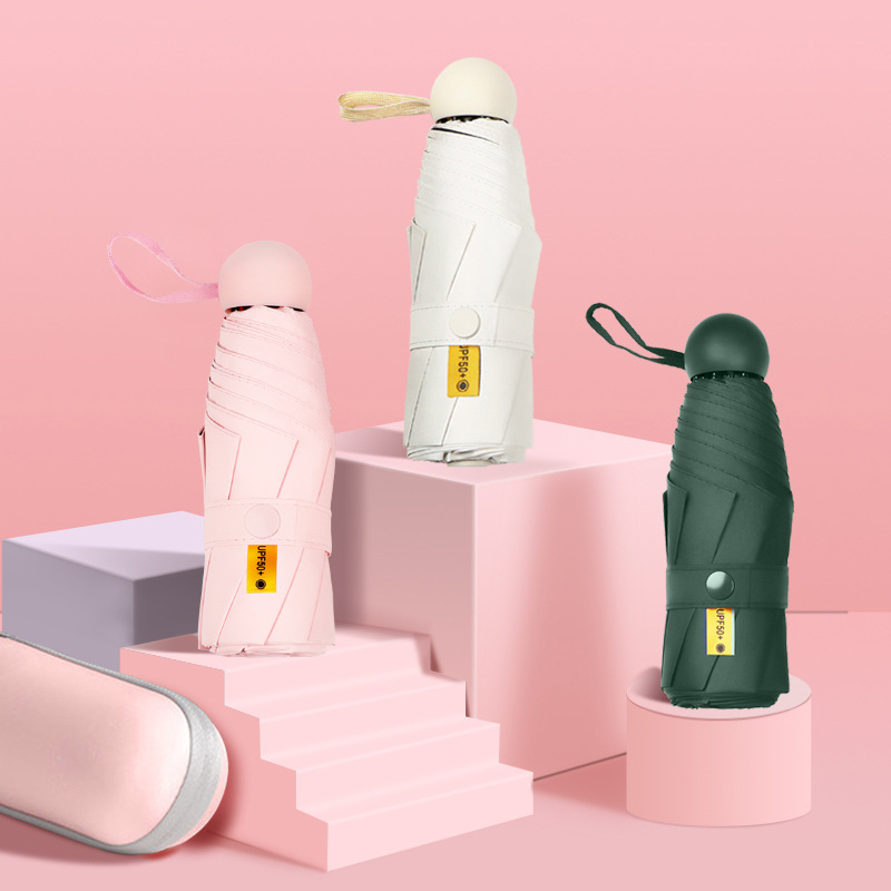 포켓 캡슐 5 배 써니 우산 이중 사용 소형 휴대용 인쇄 로고 차양 태양 보호 및 여성용 자외선 차단스토어 가기