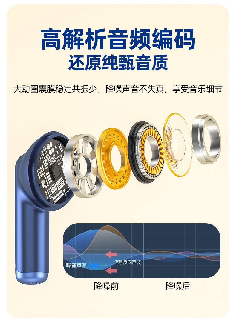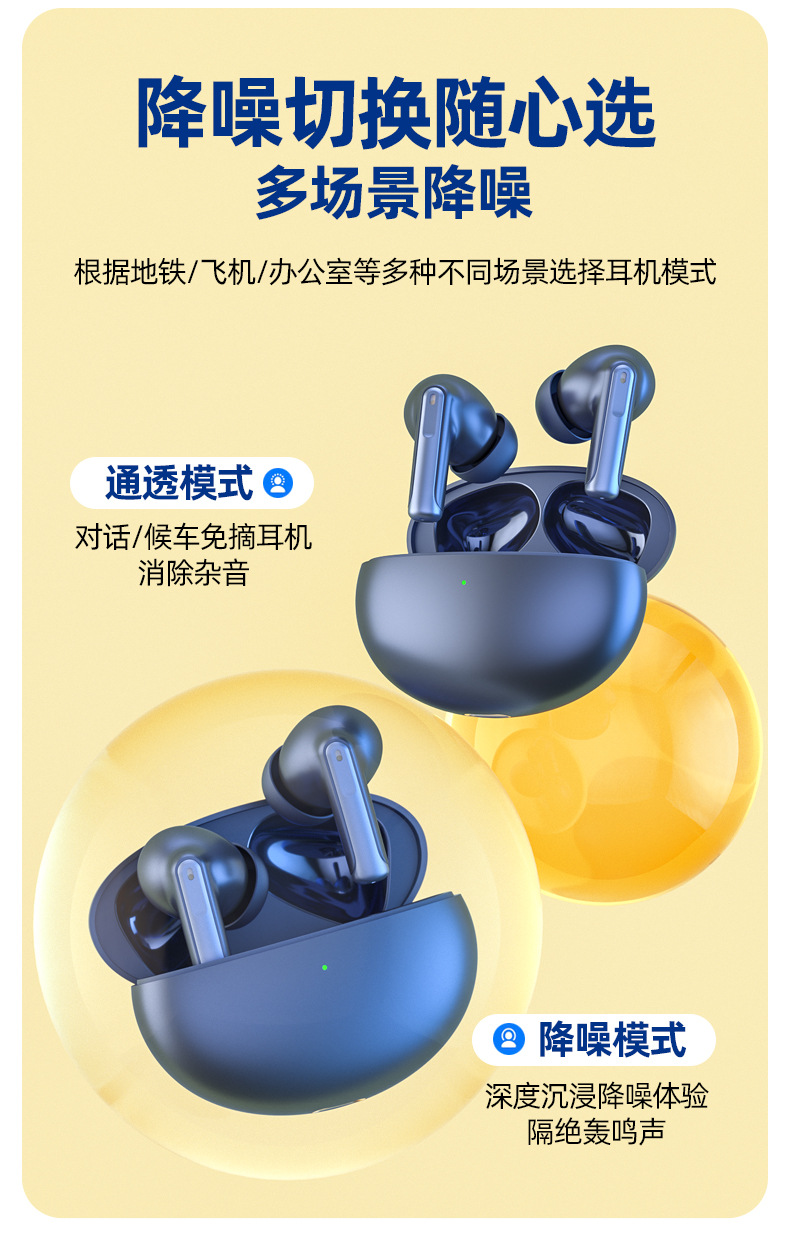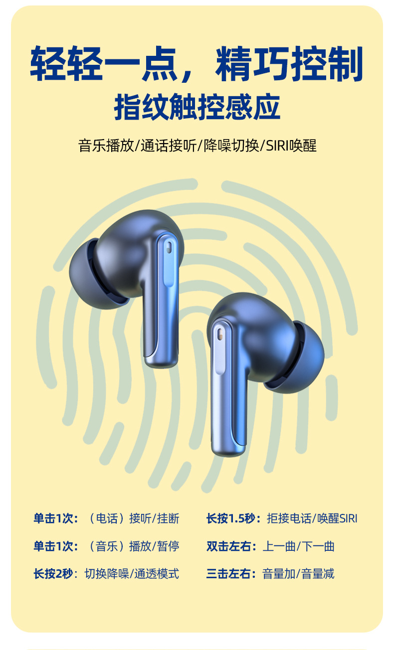 【降噪版功能】ANC主动降噪/ENC通话降噪/无线充电/触控操作/召唤Siri/上下曲/加减音量/播放暂停,拨打/接听拒绝电话