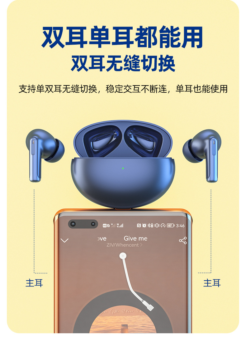 【普通版功能】 【功能】ENC通话降噪+无线充电+触控操作/召唤Siri/上下曲/加减音量/播放暂停,拨打/接听拒绝电话