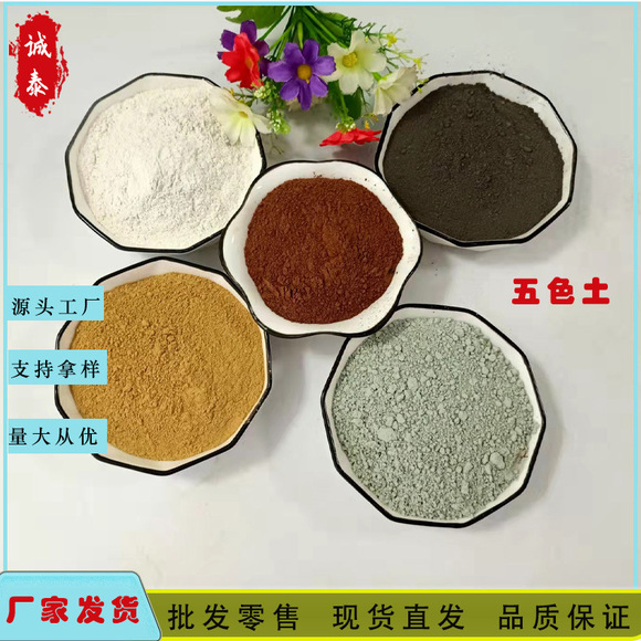 青黑白红黄五色土批发金木水火土五行土矿物泥粉泥灸火山泥粉