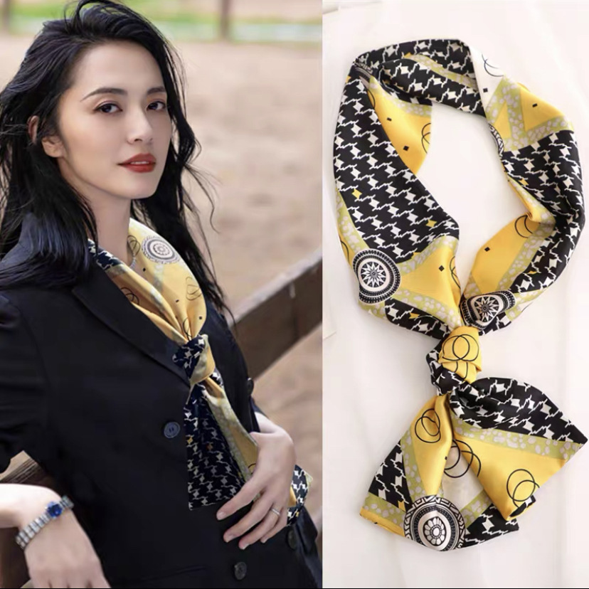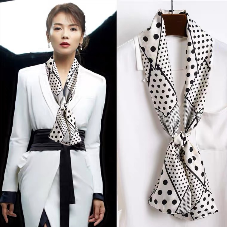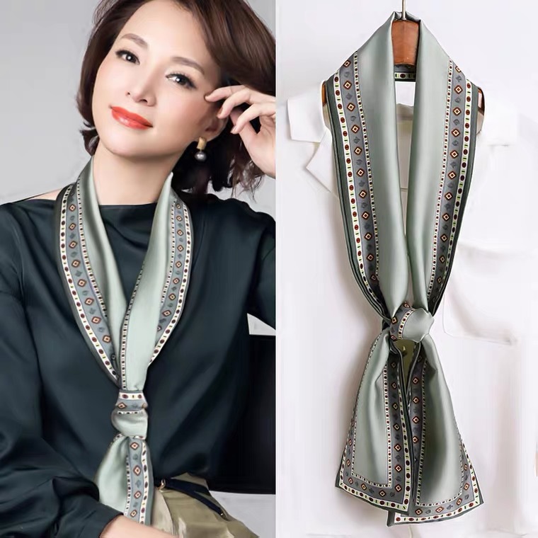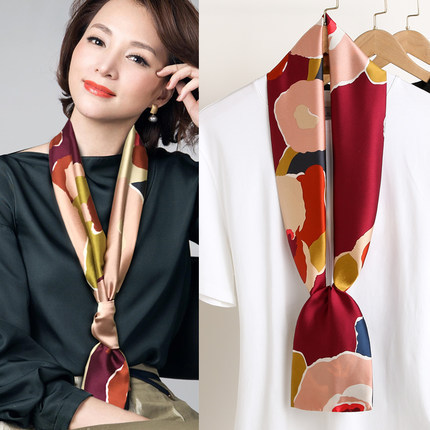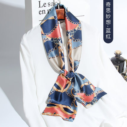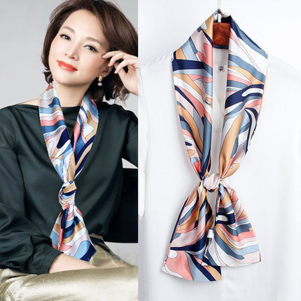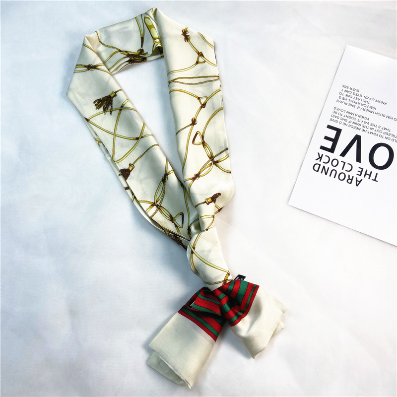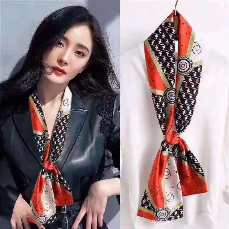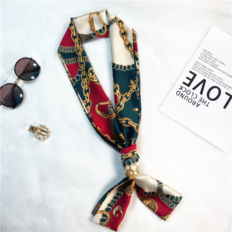 한국 스타일 작은 긴 좁은 실크 스카프 여성의 모든 일치 봄과 가을 목걸이 장식 스카프 긴 얇은 스카프 넥타이 머리 스카프
