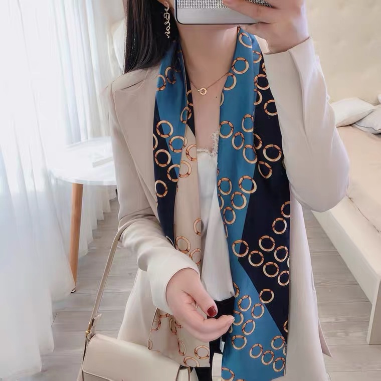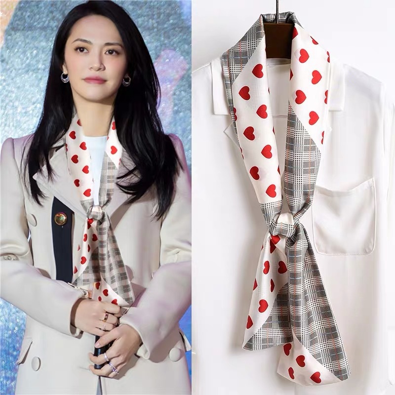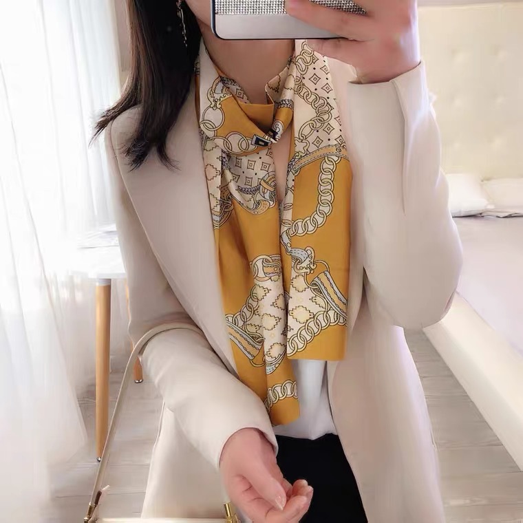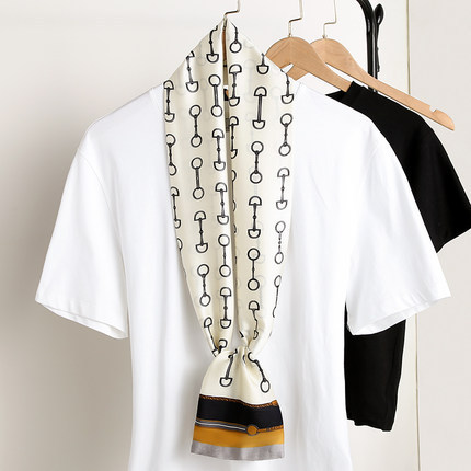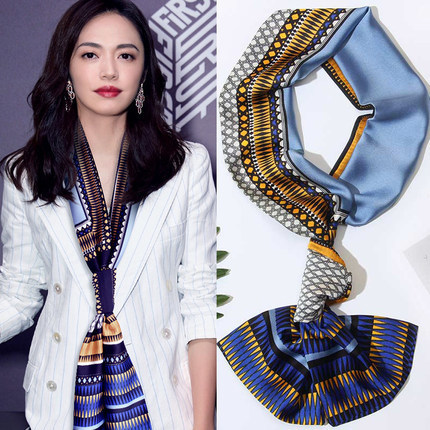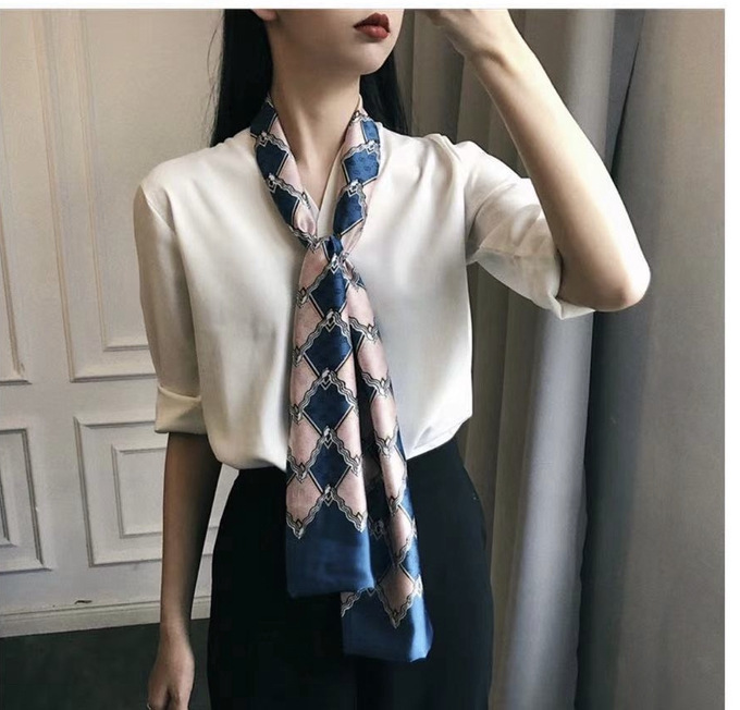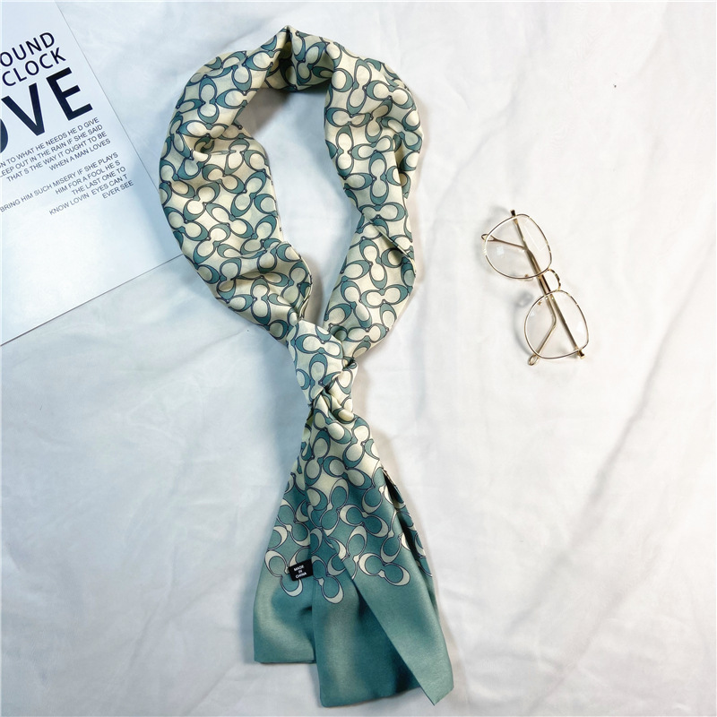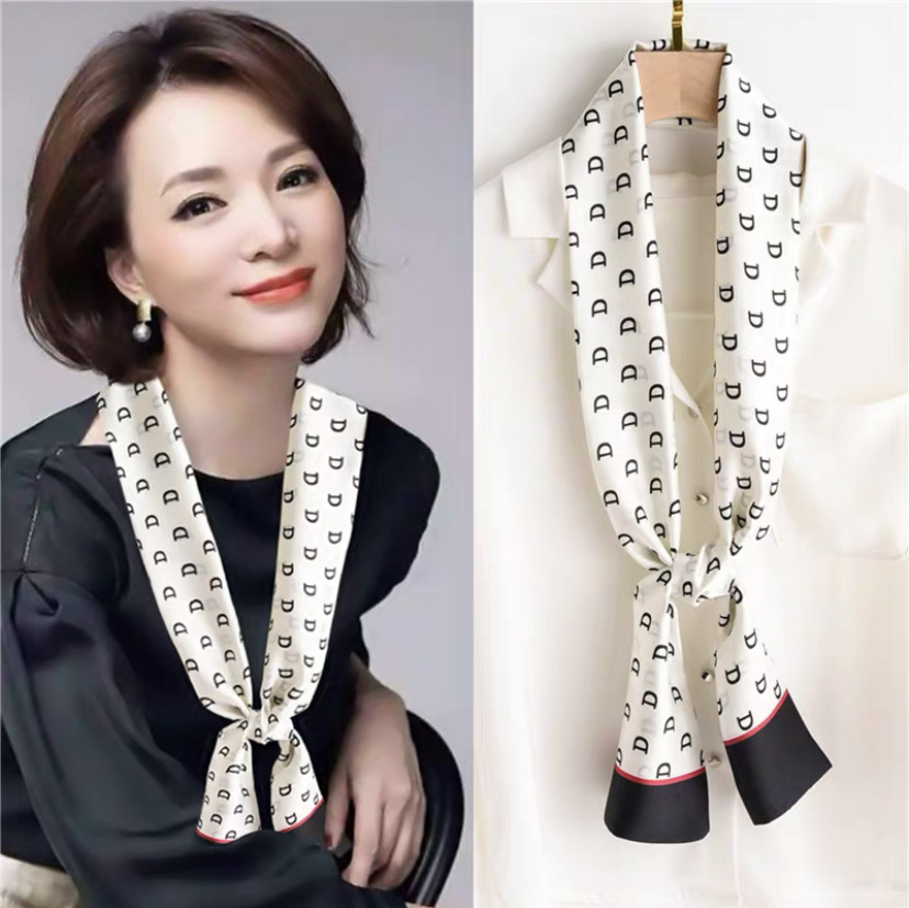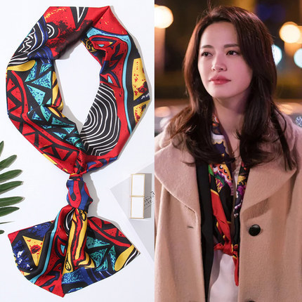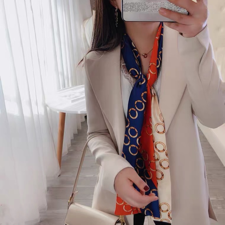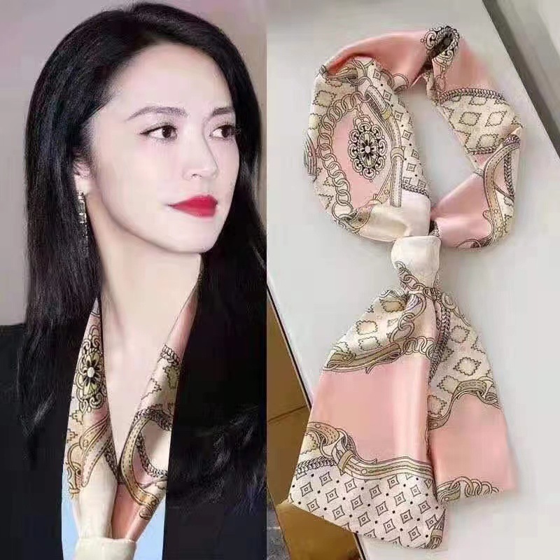 한국 스타일 작은 긴 좁은 실크 스카프 여성의 모든 일치 봄과 가을 목걸이 장식 스카프 긴 얇은 스카프 넥타이 머리 스카프스토어 가기