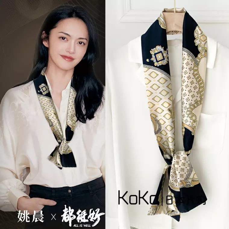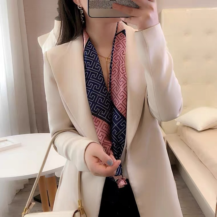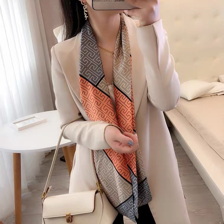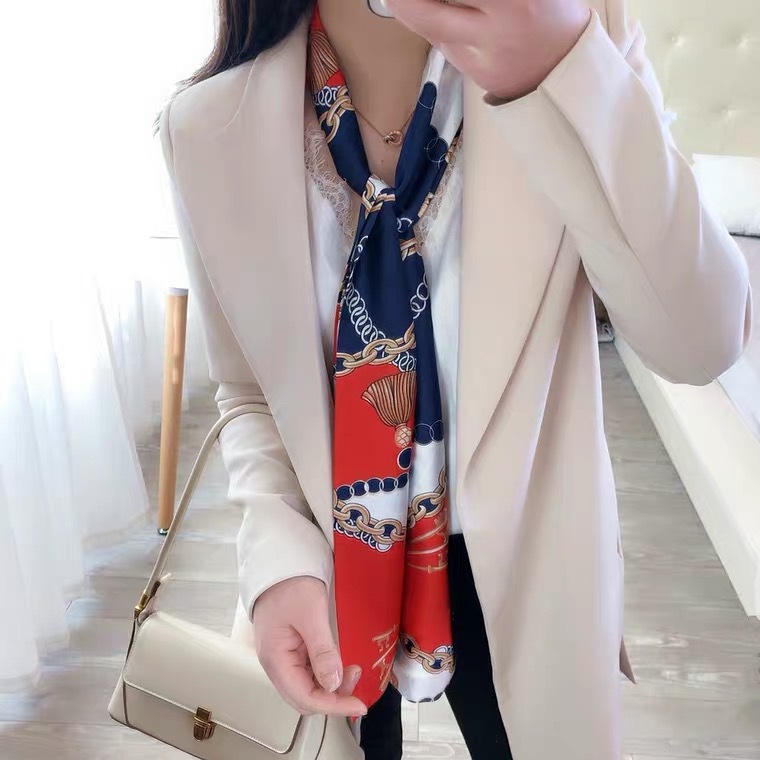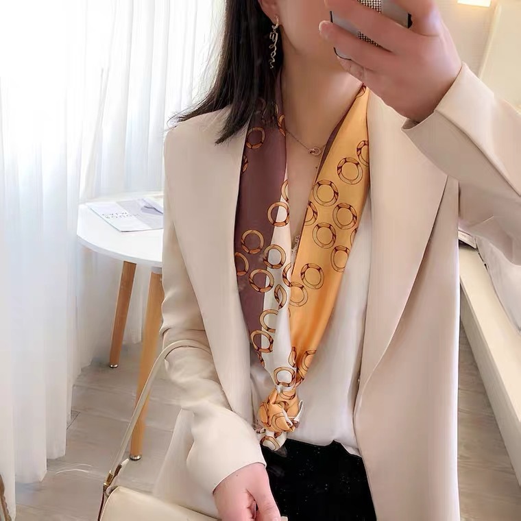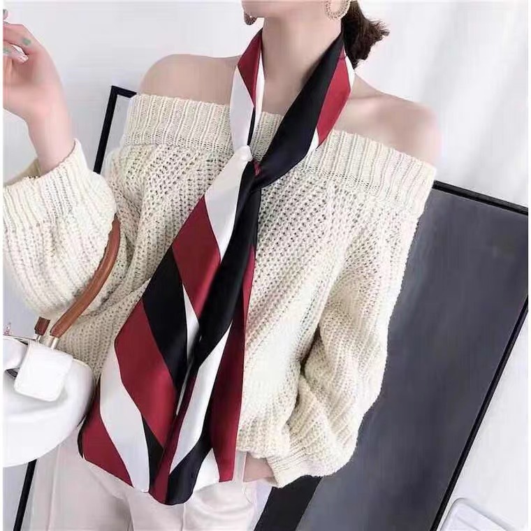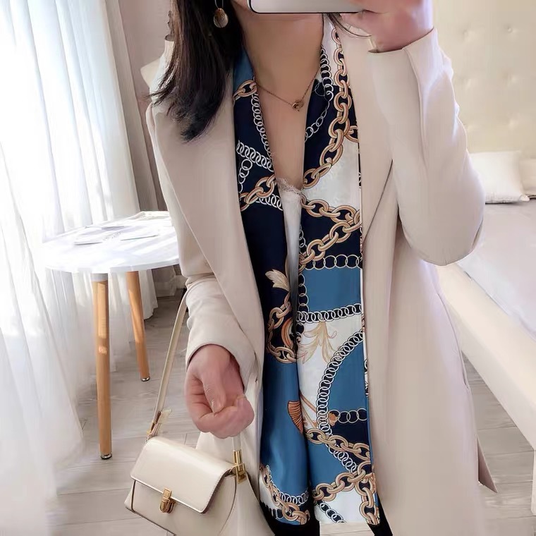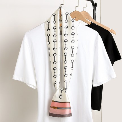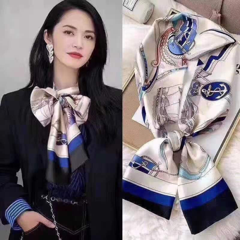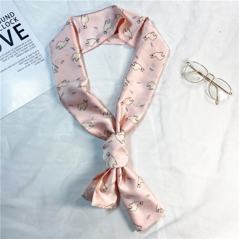 한국 스타일 작은 긴 좁은 실크 스카프 여성의 모든 일치 봄과 가을 목걸이 장식 스카프 긴 얇은 스카프 넥타이 머리 스카프스토어 가기