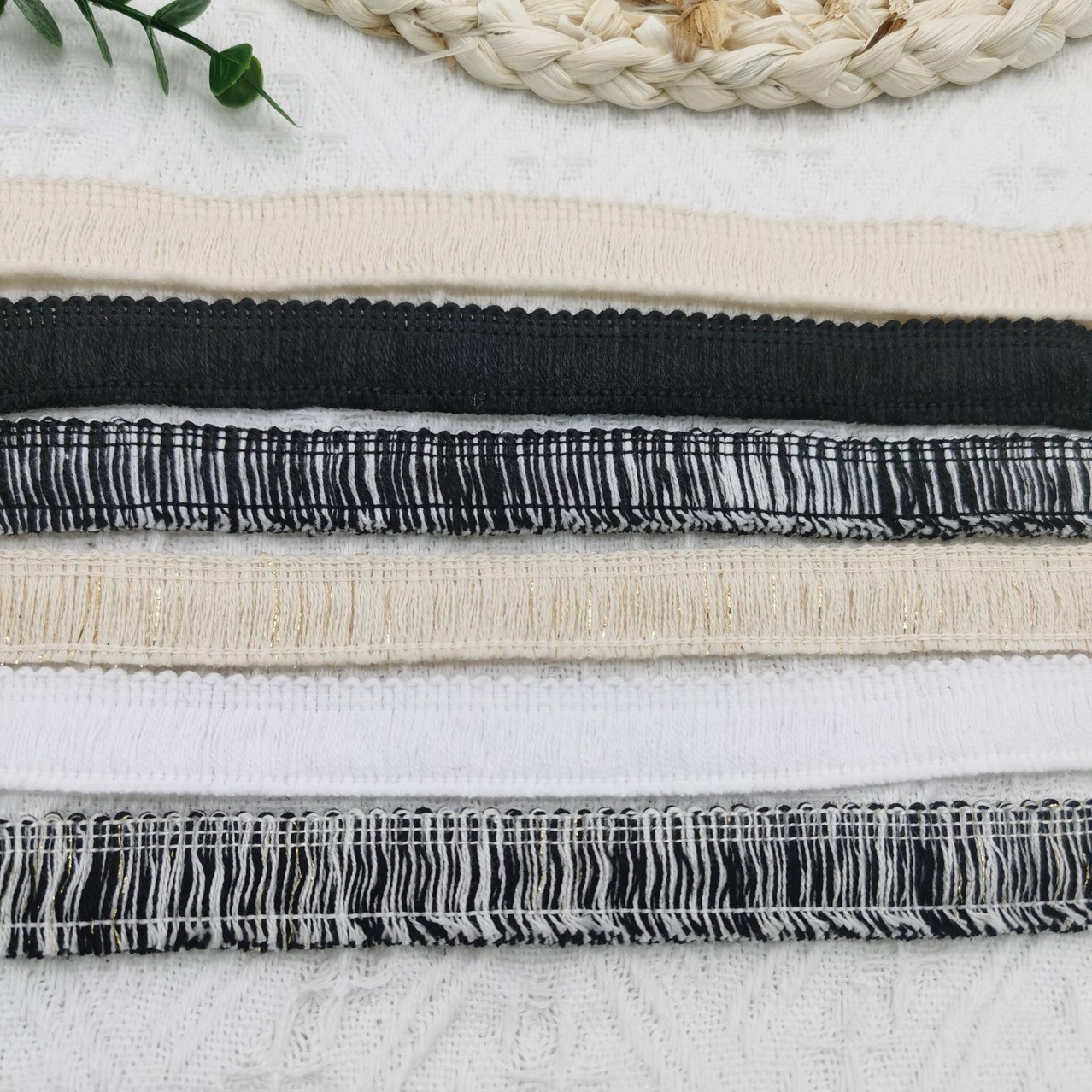 공장 직공급 면사 행 수염 술 레이스 2cm 흑백 짠 면사 행 수염 의류 홈 섬유 액세서리