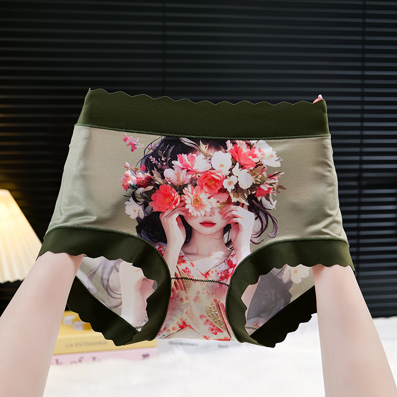 플러스 사이즈 속옷 여자의 항균 가랑이 통기성 중간 허리 높은 탄성 아름다움 그림 인쇄 브리프 원활한 엉덩이 반바지스토어 가기
