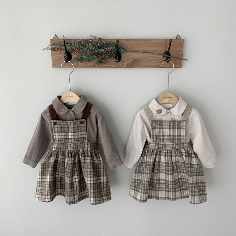 한국 스타일 아동복 아기 소녀 세련된 유행 스트랜드 스커트 초크 편안한 원피스 복고풍 스타일 신선한 스트랜드 스커트