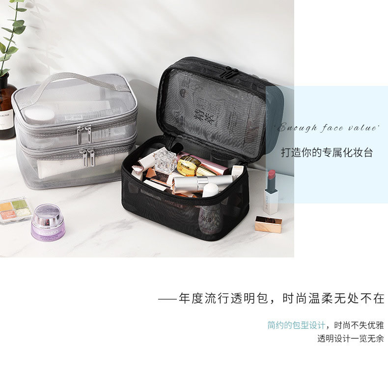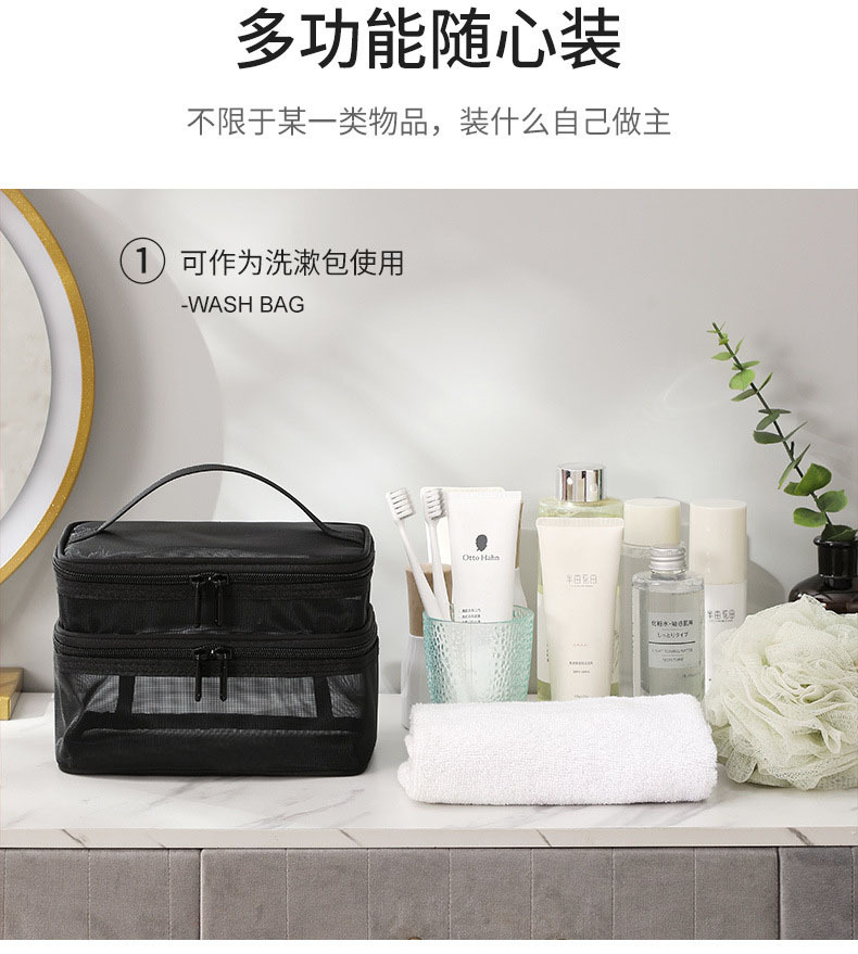 대용량 휴대용 세면도구 가방, 출장 세면도구 가방, 수납 가방, 여행용 메쉬 가방, 화장품 가방, 단층, 이중 레이어, 3겹스토어 가기