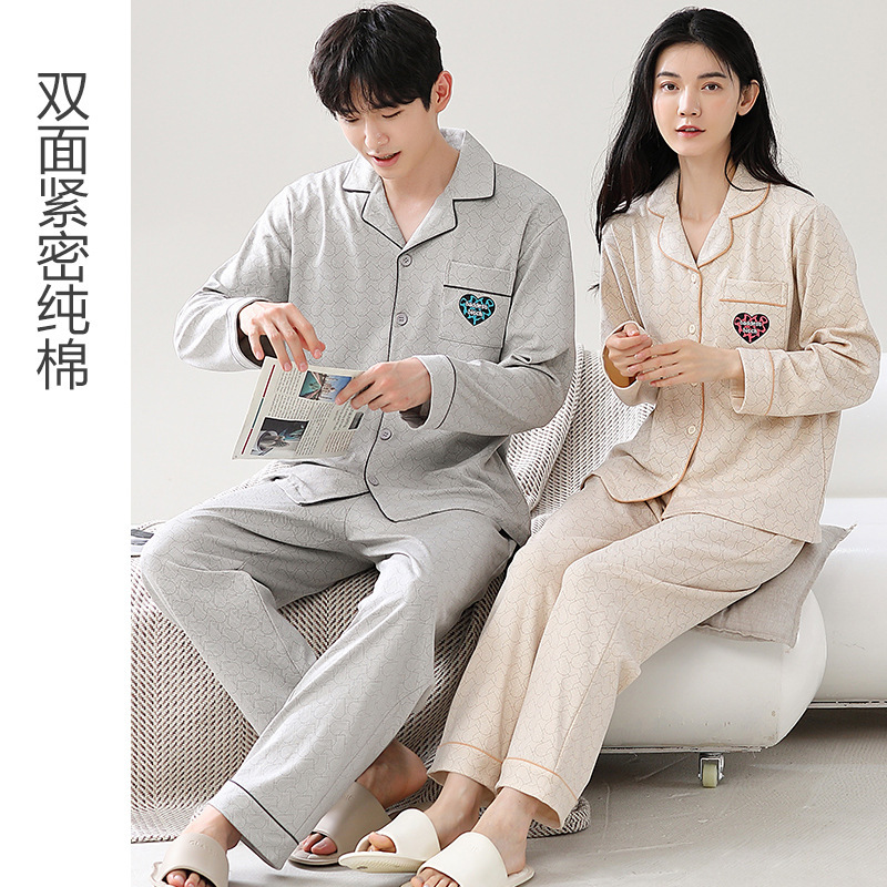가을과 겨울 단단한 면화 커플 간단한 신선한 느슨한 카디건 긴 소매 편안한 스타일 면 청소년 홈 의류 세트