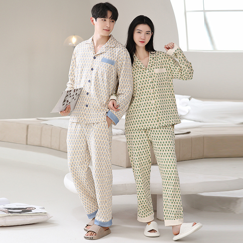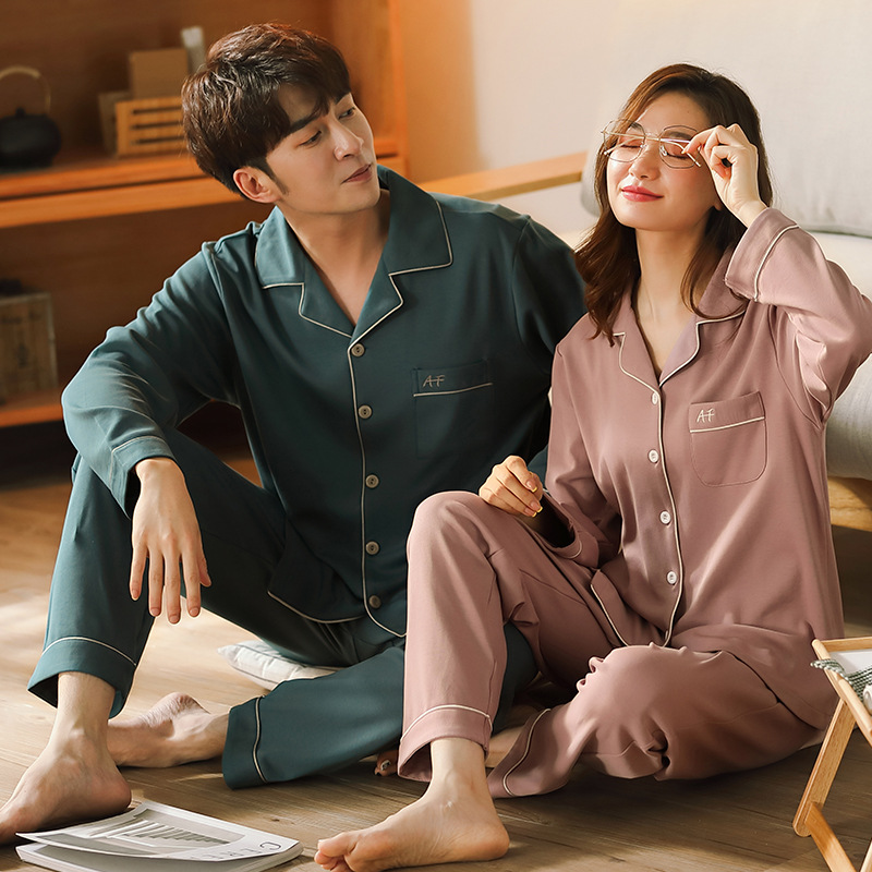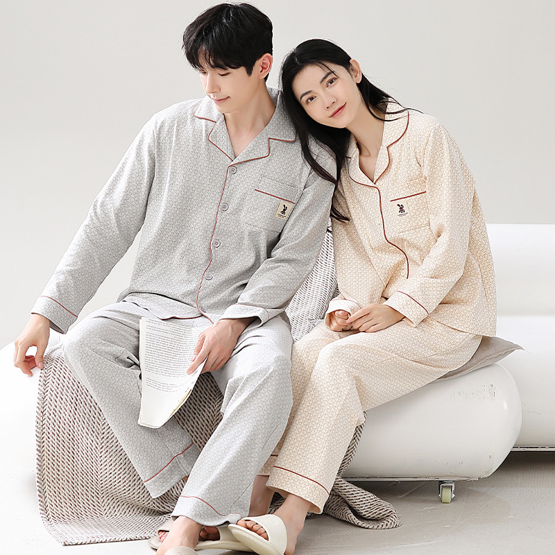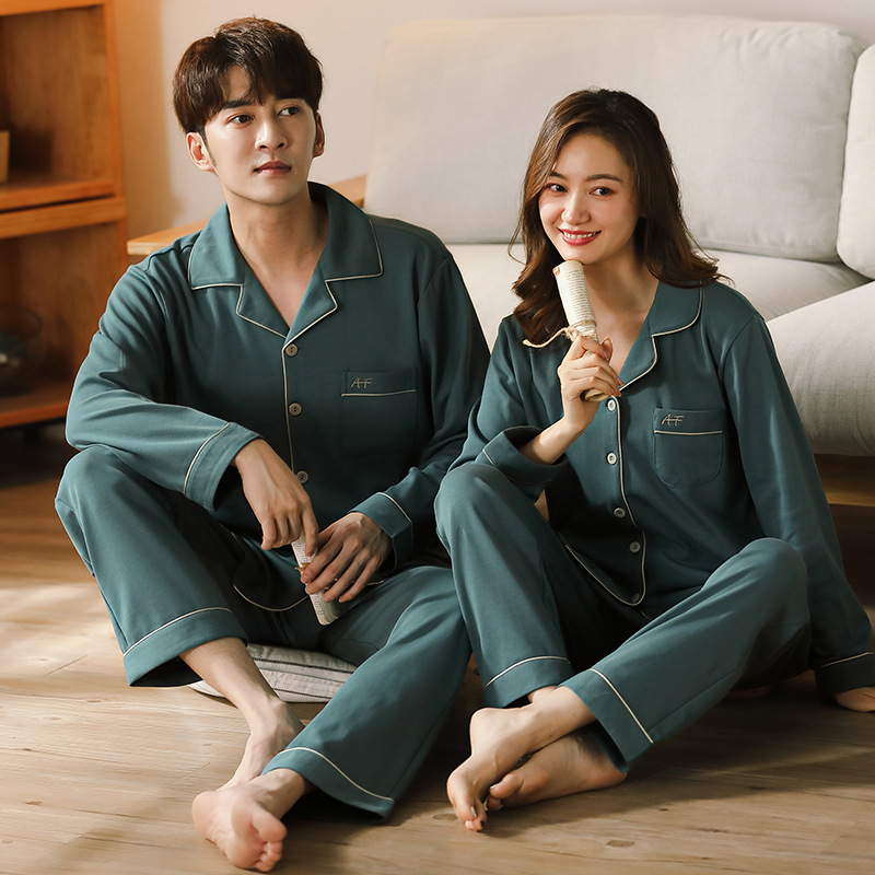 가을과 겨울 단단한 면화 커플 간단한 신선한 느슨한 카디건 긴 소매 편안한 스타일 면 청소년 홈 의류 세트스토어 가기