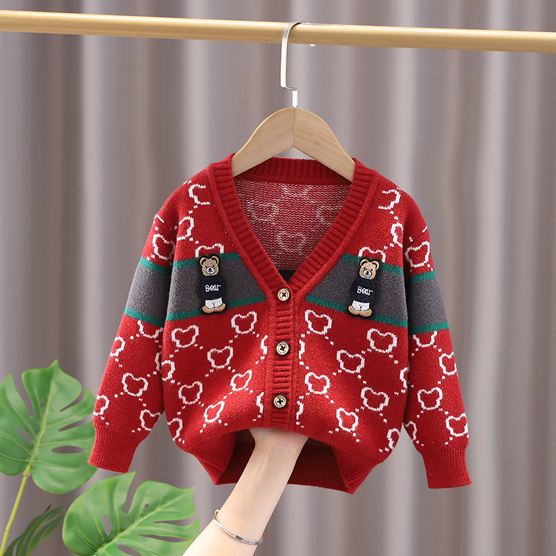 2022 봄 새 어린이 스웨터 가디건 소년 소녀 아기 카디건 새로운 버튼 셔츠