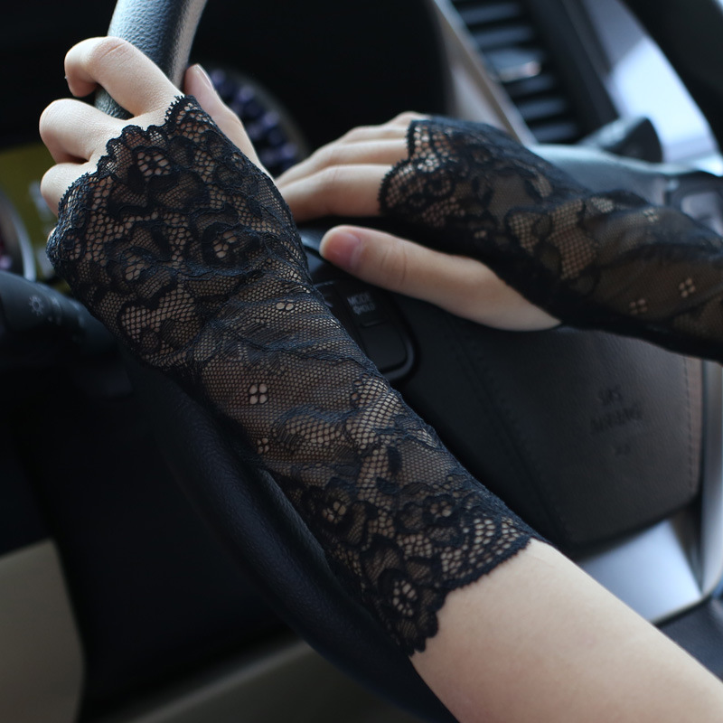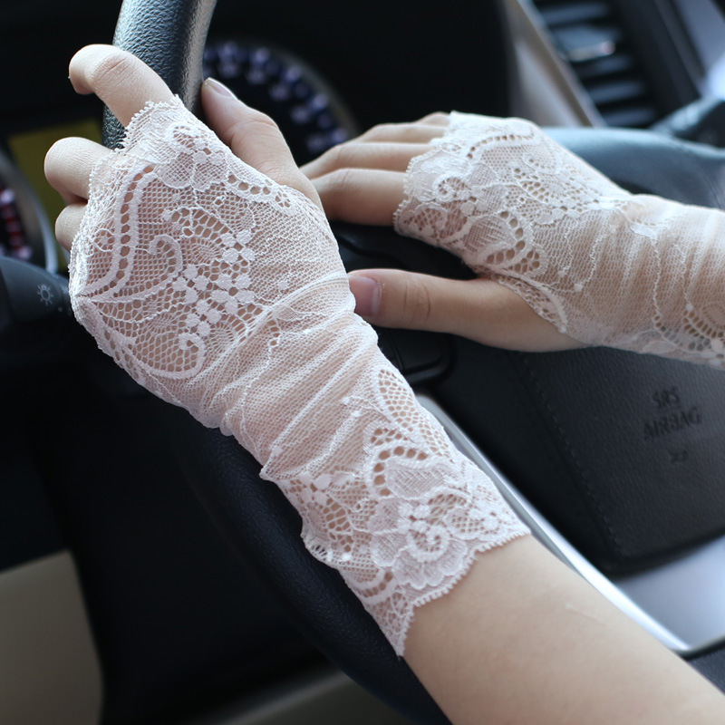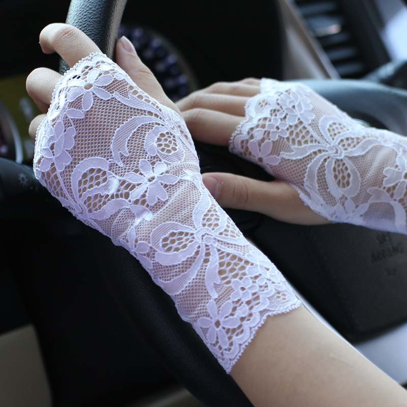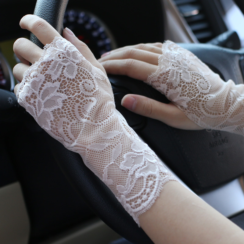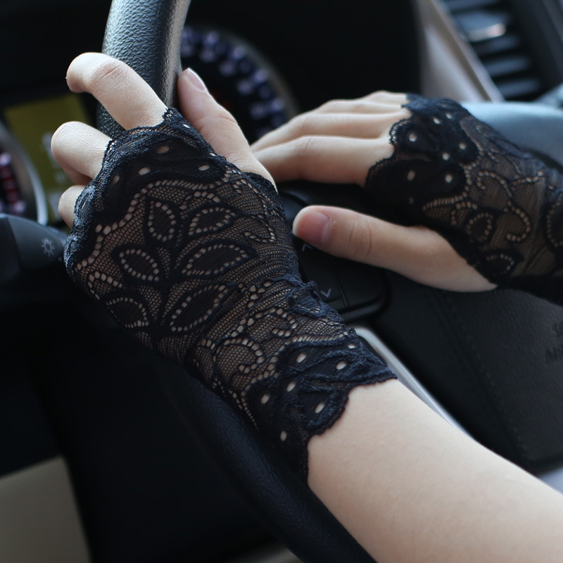 공장 직접 선 스크린 레이스 장갑 반 손가락 여성 여름 얇은 운전 손가락 흉터 문신 반 장식 도매