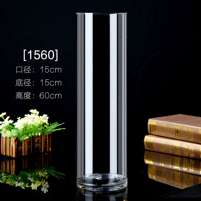 초대형 꽃병 50cm 60 꽃 배열 풍부한 대나무 백합 원통형 직선 바닥 모든 일치 투명 유리 꽃병