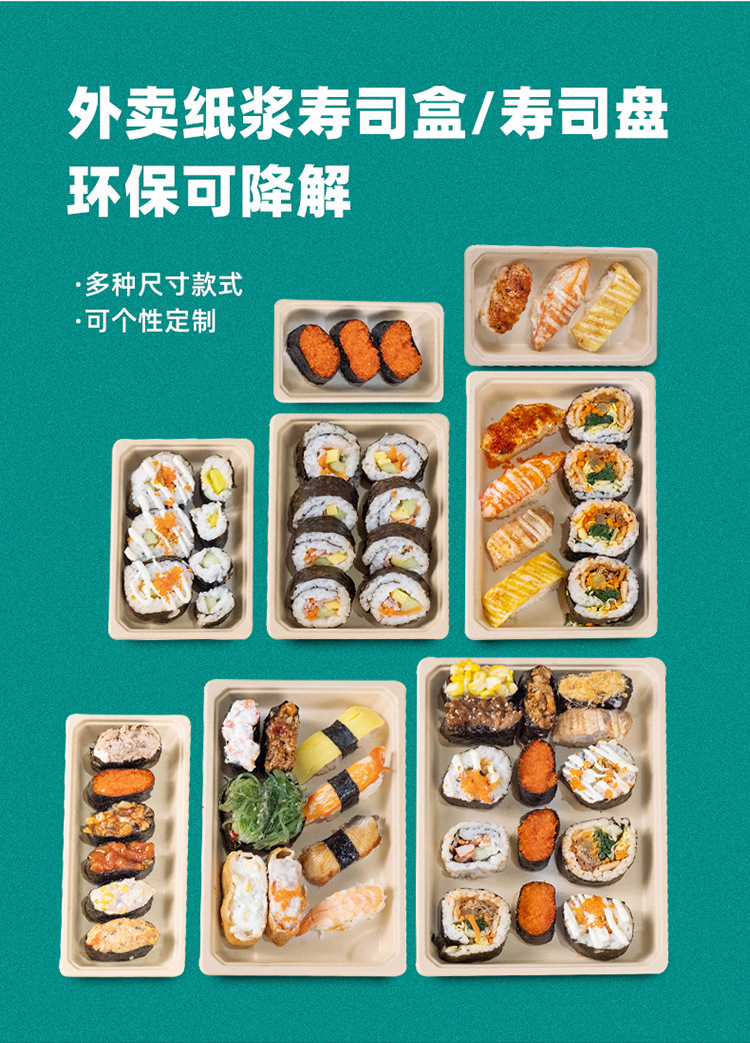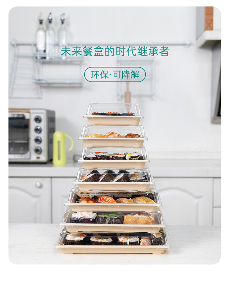 일회용 스시 상자 상업용 테이크 아웃 포장 상자 환경 친화적 인 생분해 성 직사각형 일본 스시 접시 포장 도시락 상자