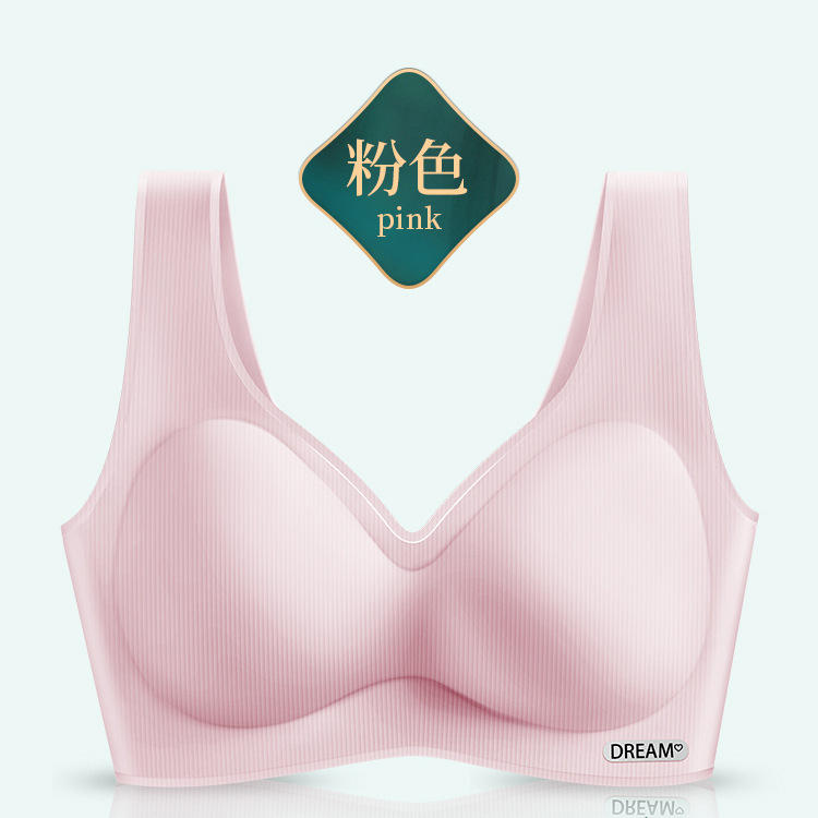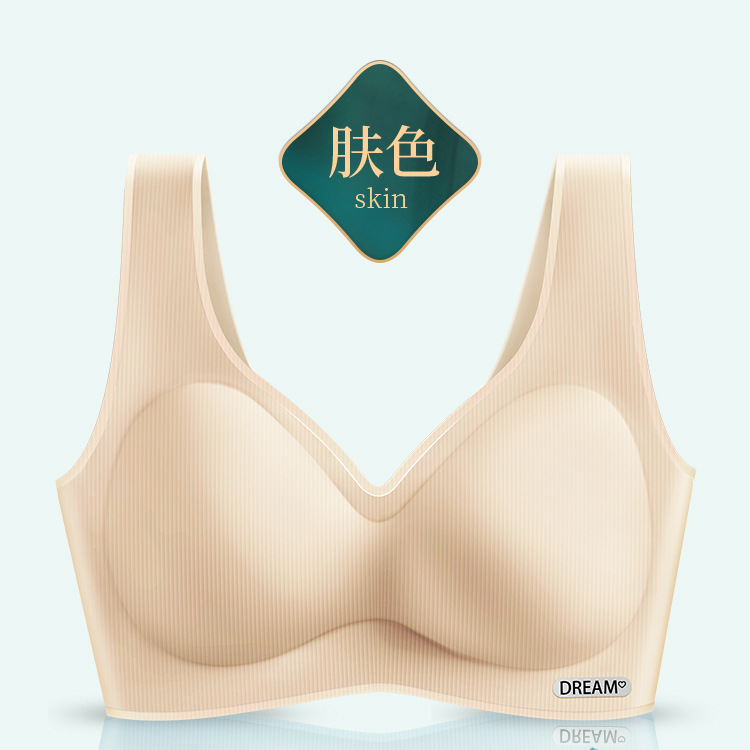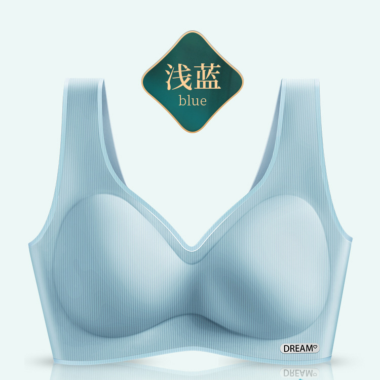 라이브 핫 셀링 통기성 아이스 실크 라텍스 속옷 여성용 원피스 와이드 숄더 스트랩 원활한 여성용 브래지어 작은 가슴 푸시 업