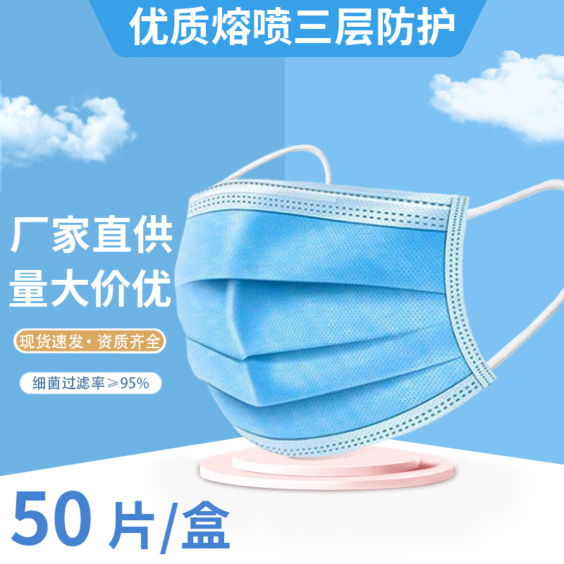 일회용 마스크 먼지 보호 성인 3 층 Meltblown 헝겊 필터 부직포 직물 독립 포장 재고 도매스토어 가기