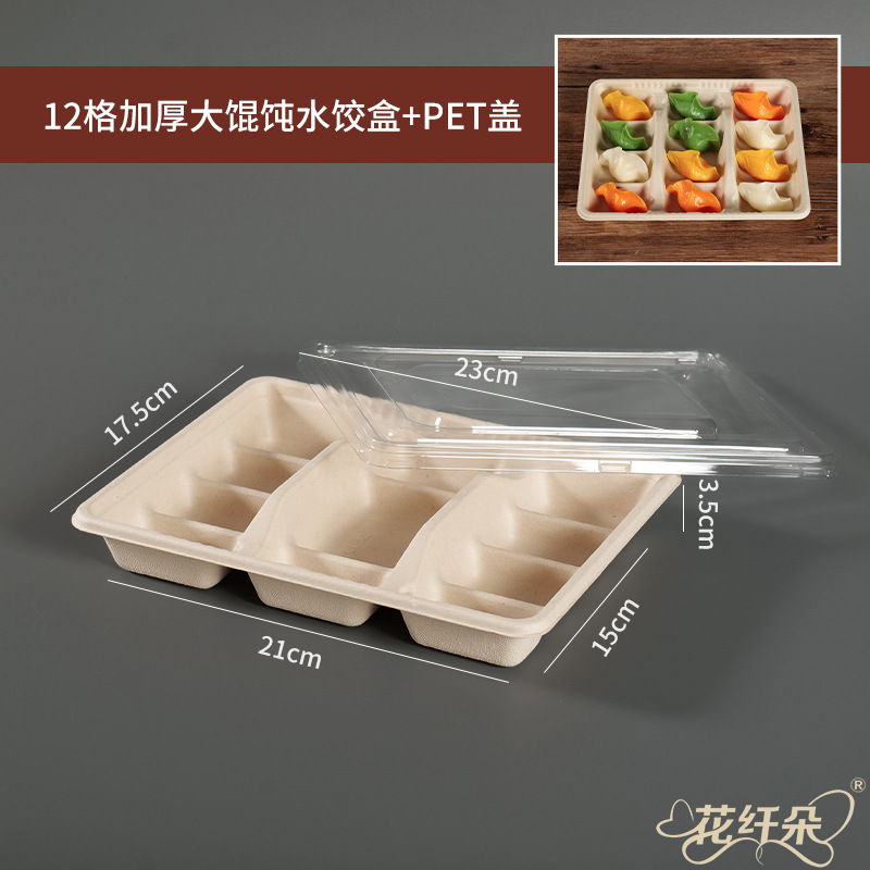 • 12칸 종이 펄프 완탕 만두 상자 + PET 뚜껑