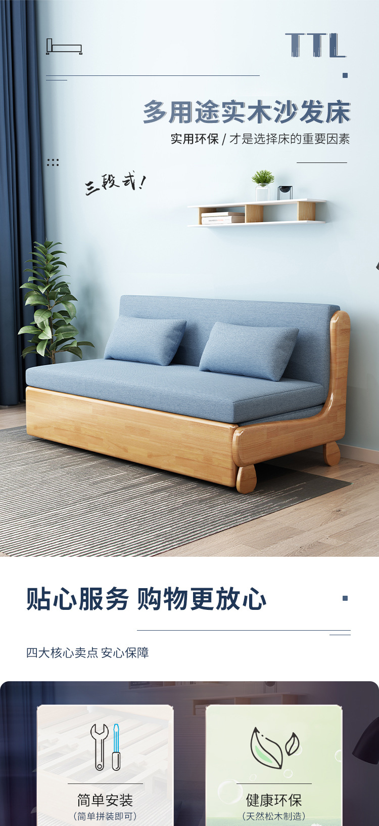 인터넷 연예인 간단한 접이식 단단한 나무 소파 침대 거실 다기능 이중 사용 가벼운 럭셔리 게으른 소파 베드 작은 아파트스토어 가기