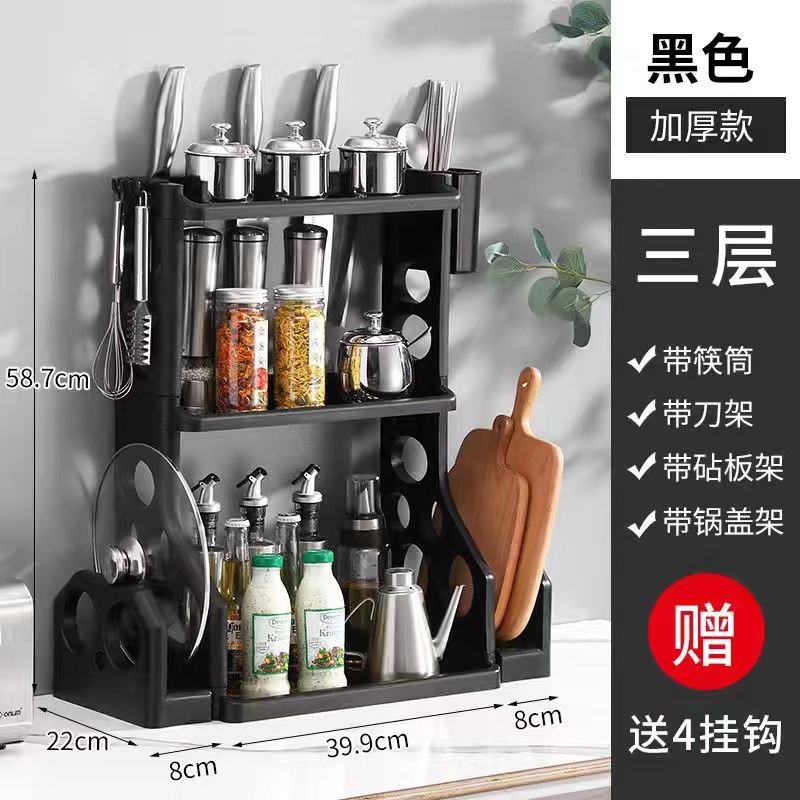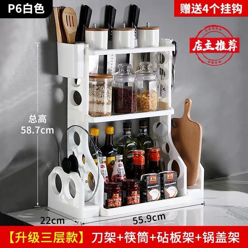 주방 수납 선반 무타공 조미료 선반 수납 선반 칼꽂이 플라스틱 용품 가정용 수납 선반