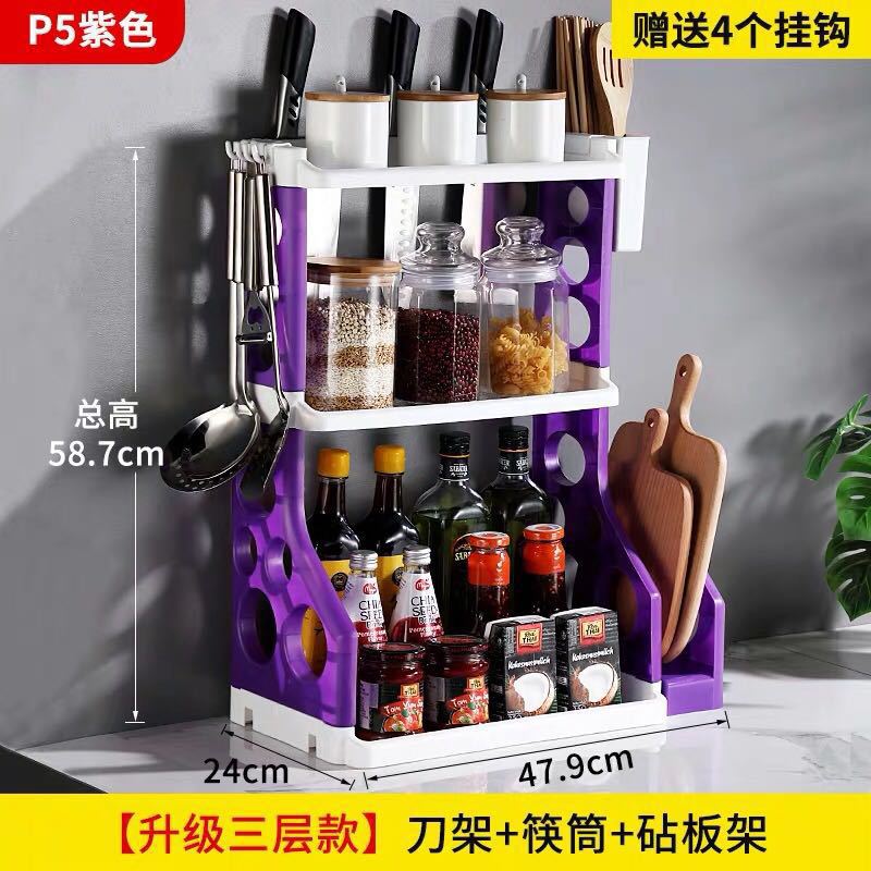 • 3 층 보라색 56cm 나이프 홀더 + 젓가락 홀더 + 도마 랙 + 냄비 커버 랙