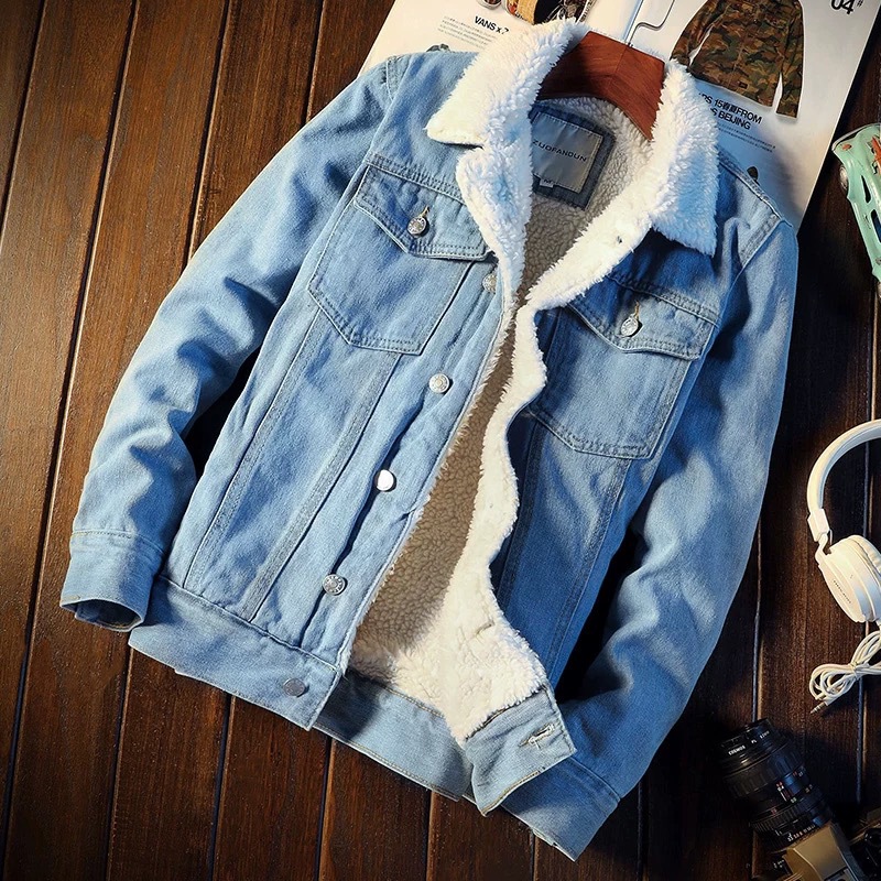 겨울 두꺼운 데님 재킷 남자의 한국 야구 세트 유행 브랜드 남자의 가을 남자의 겨울 양가죽 재킷스토어 가기