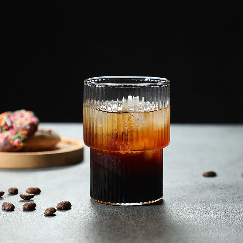 수직 패턴 커피 유리 직선 높은 붕규산 유리 주스 무스 유리 위스키 맥주 유리 단일 레이어 컵스토어 가기