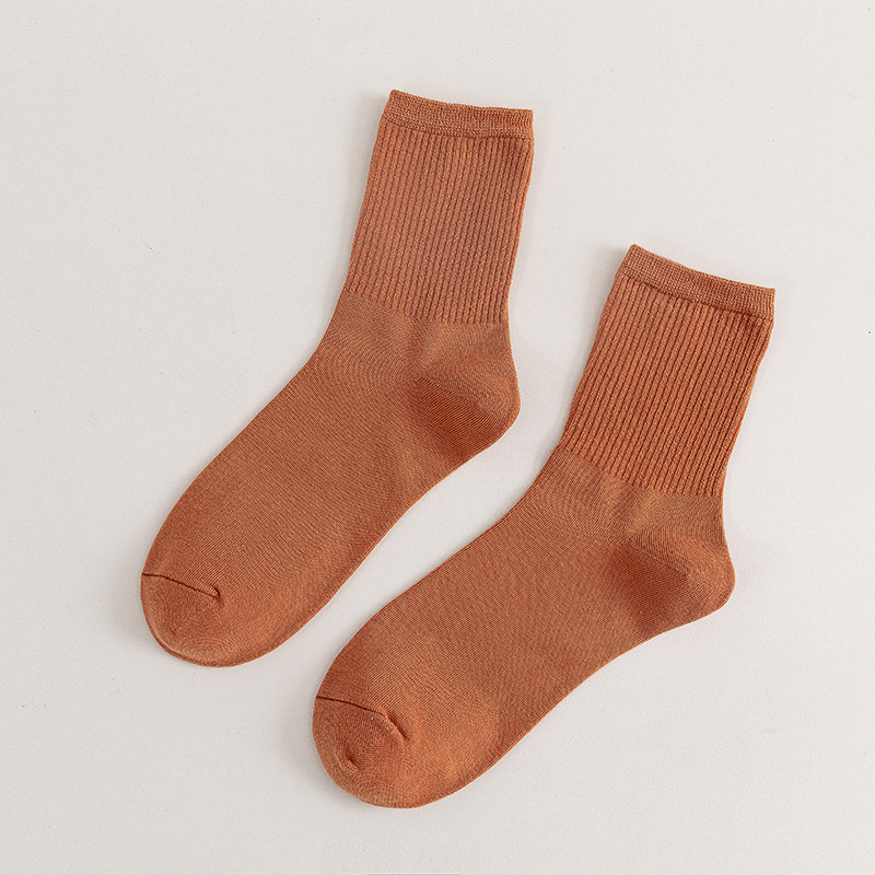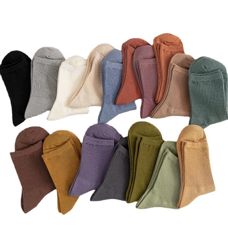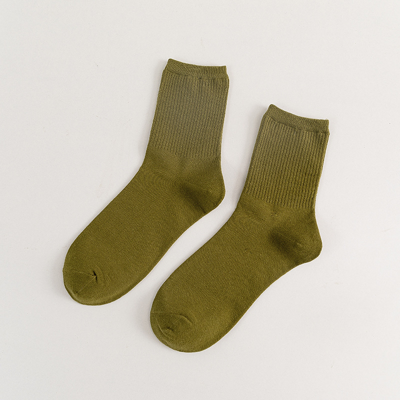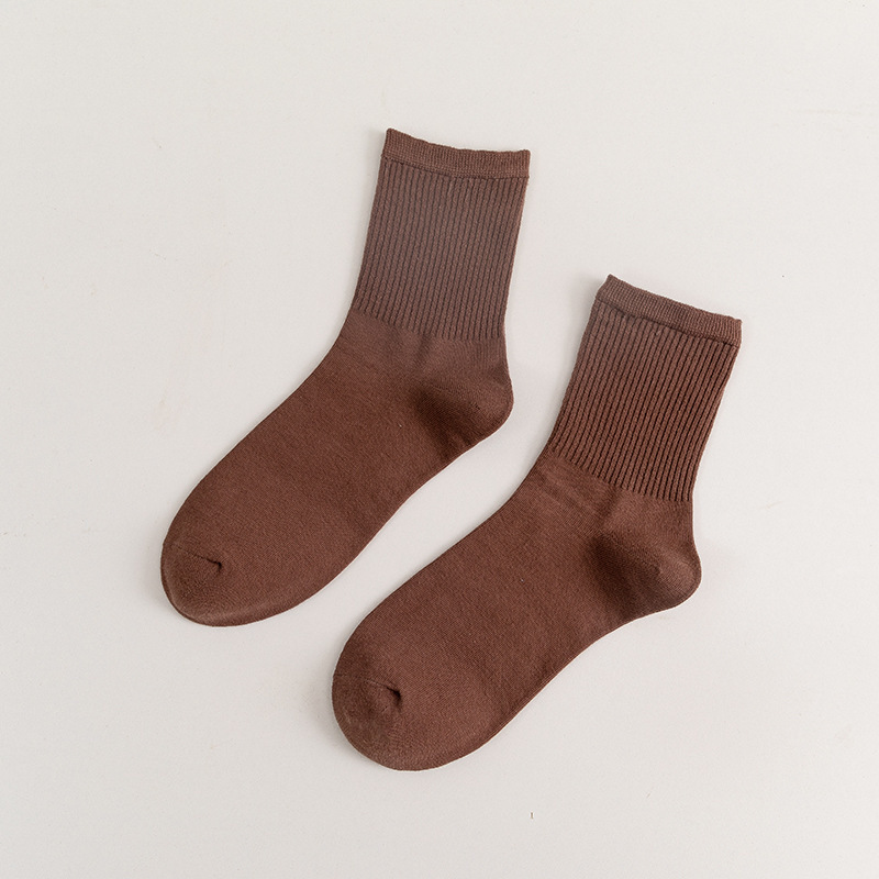 일본 스타일 복고풍 단색 간단한 여성의 중간 길이 양말 한국 어두운 색 수직 스트립 양말 가을과 겨울 모란디 색상