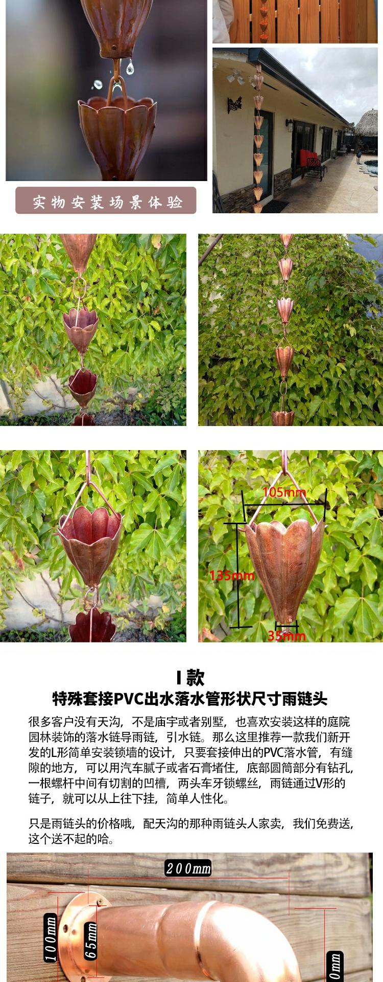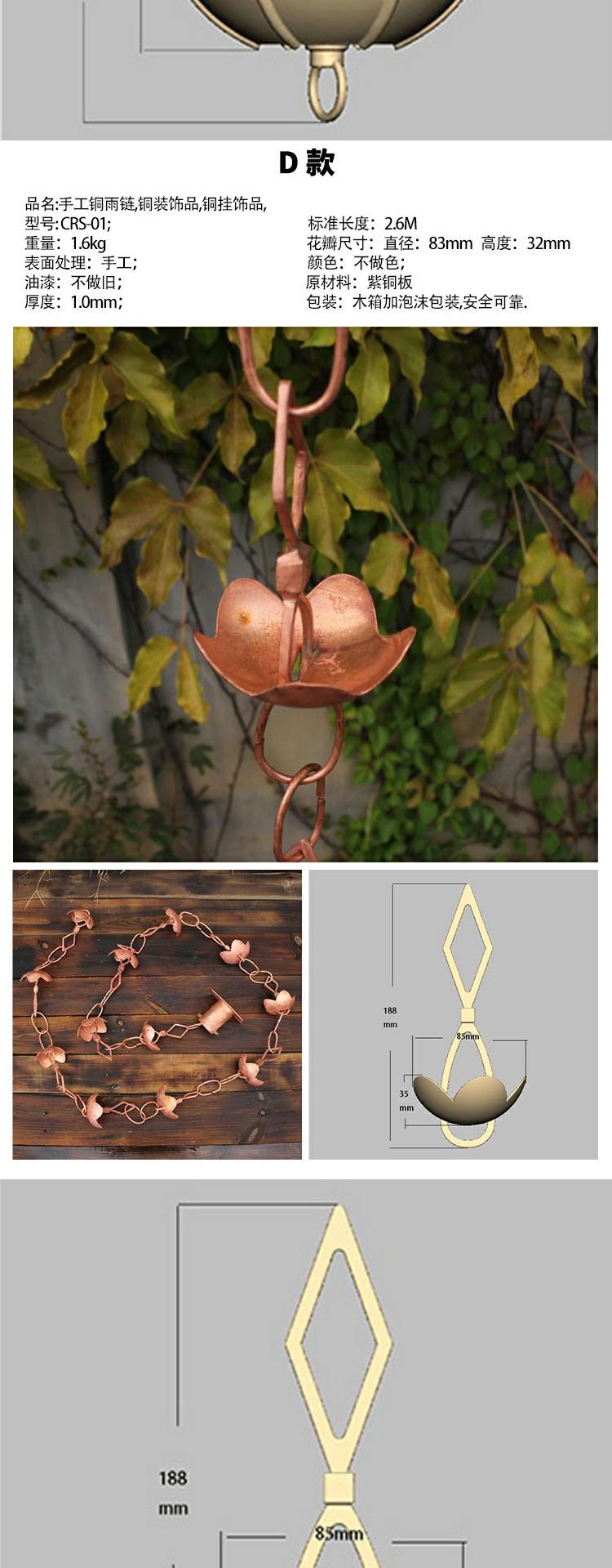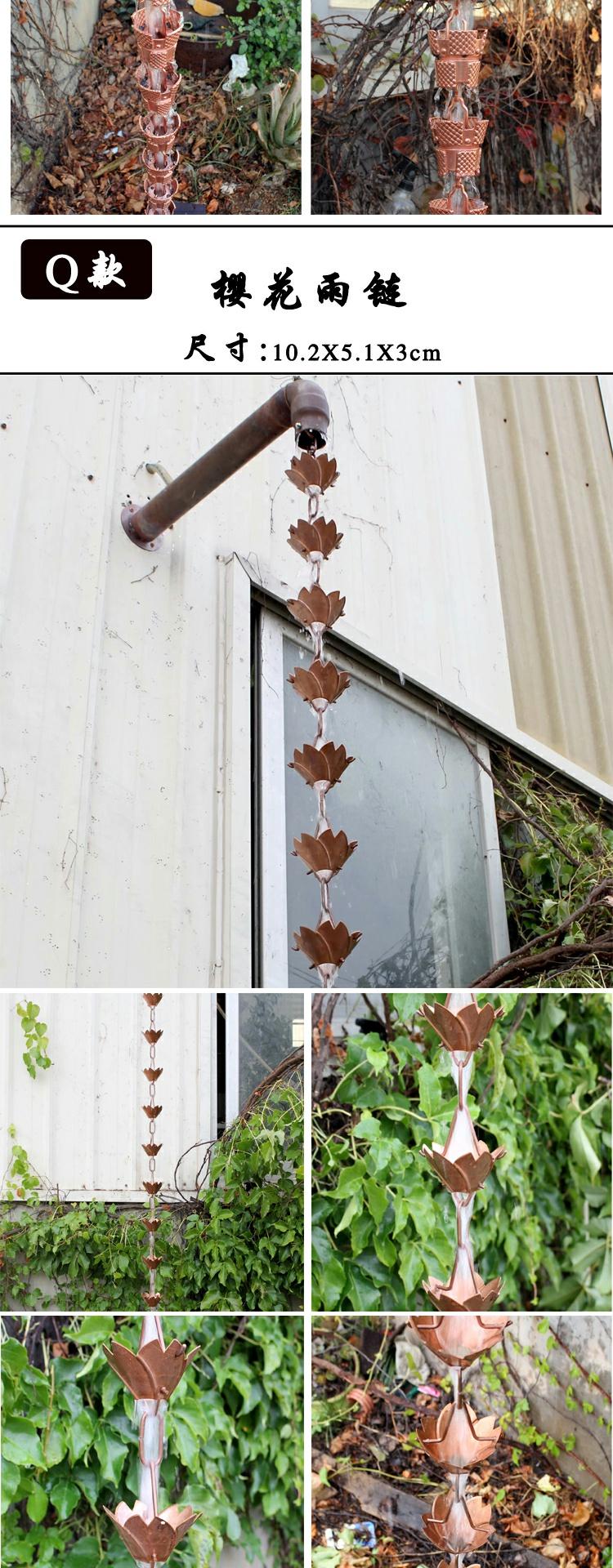 • H 붉은 구리 꽃잎 처마 떨어지는 비 사슬 총 길이 260cm