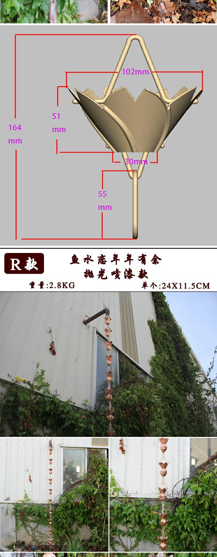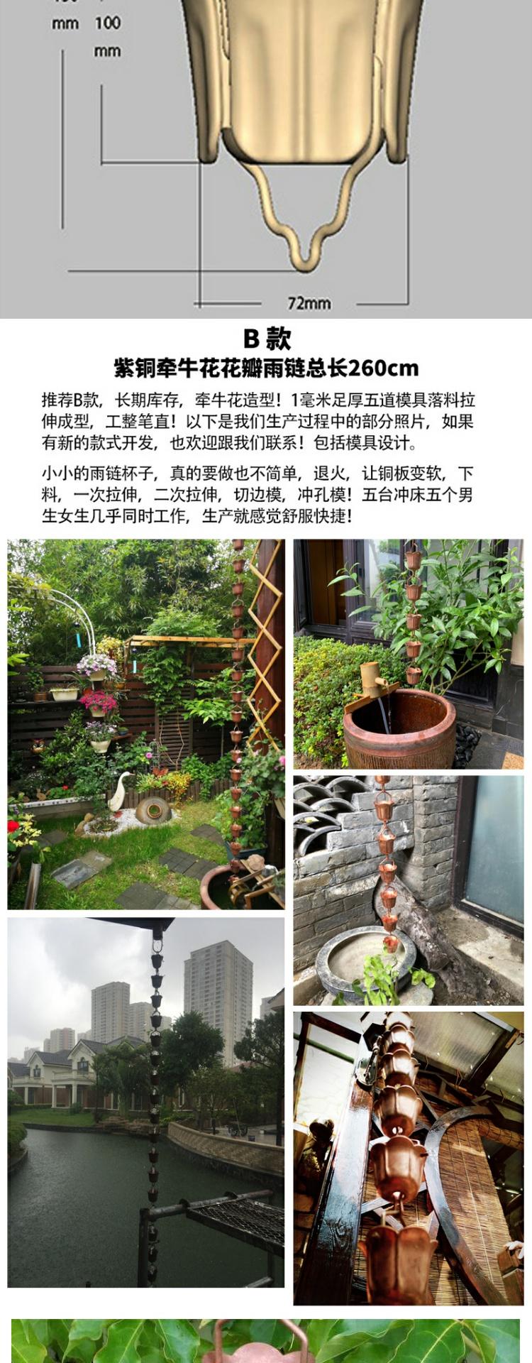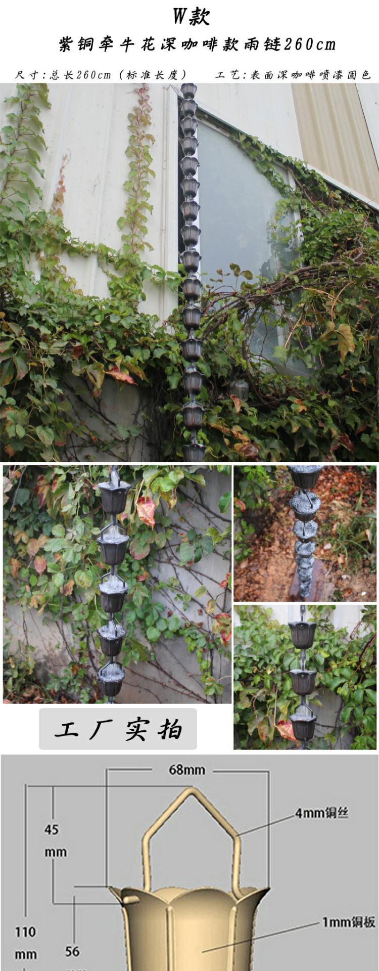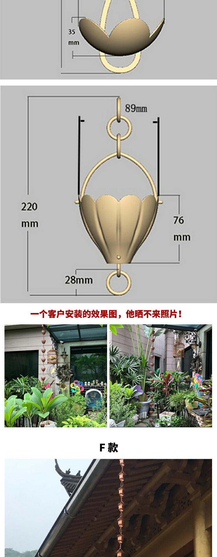 • H 붉은 구리 꽃잎 처마 떨어지는 비 사슬 총 길이 260cm