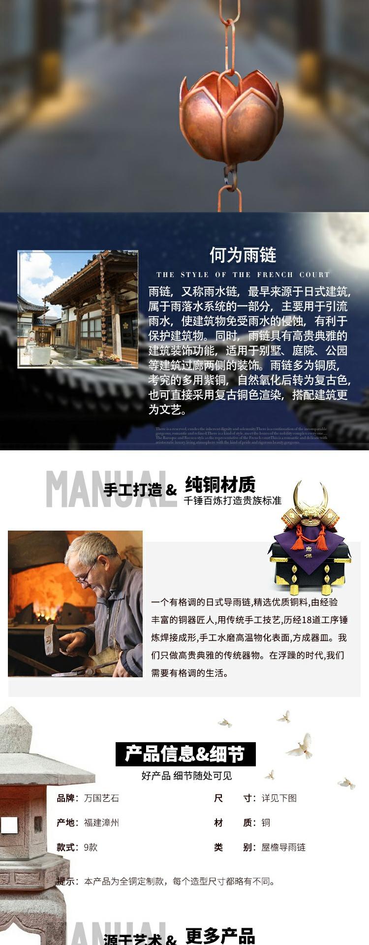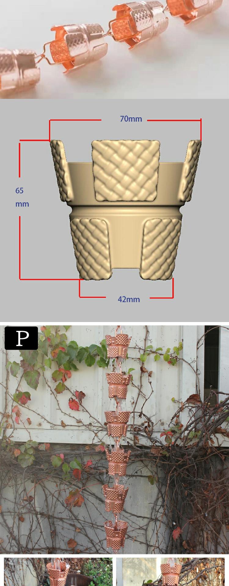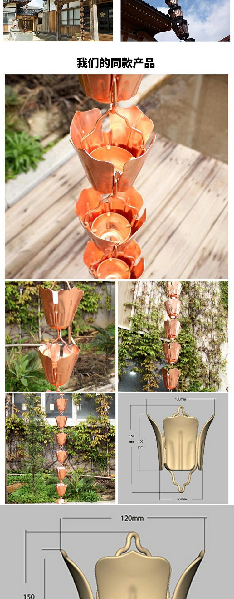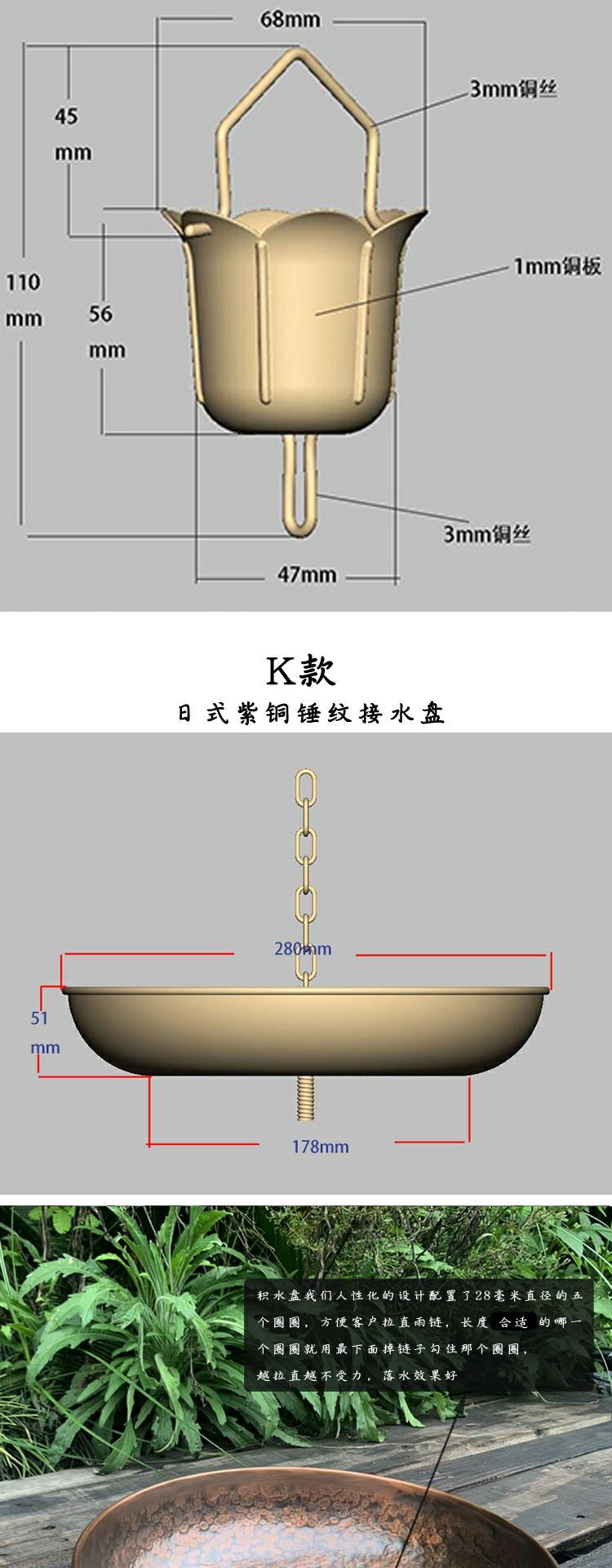 • K 일본식 구리 망치질 레인 체인 워터 트레이