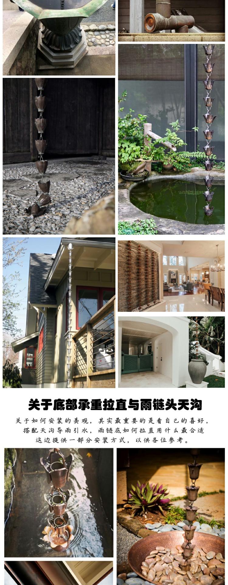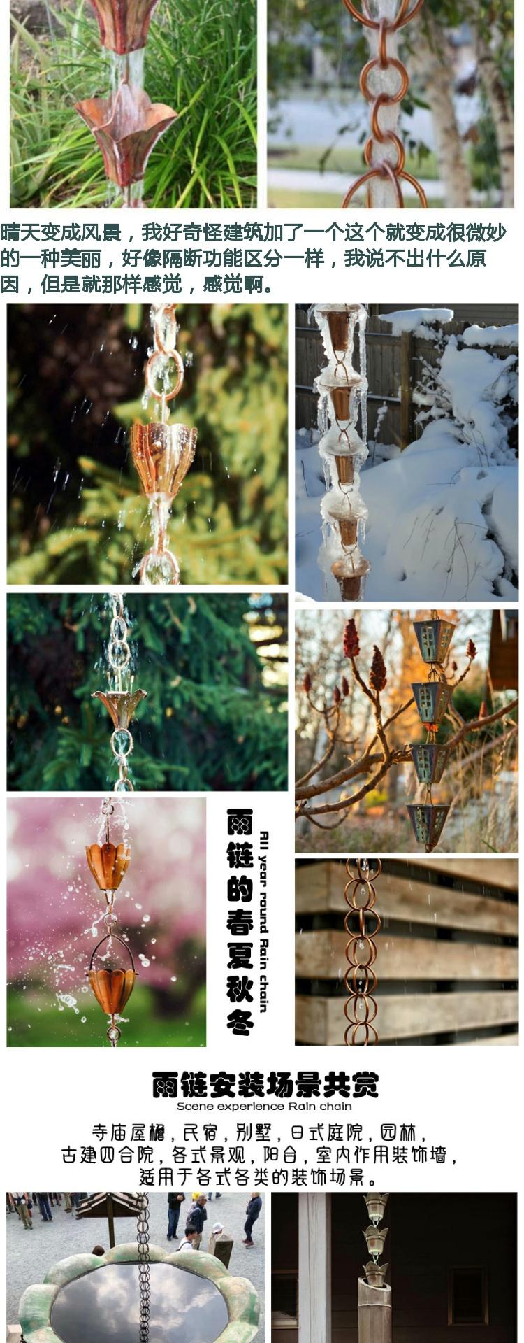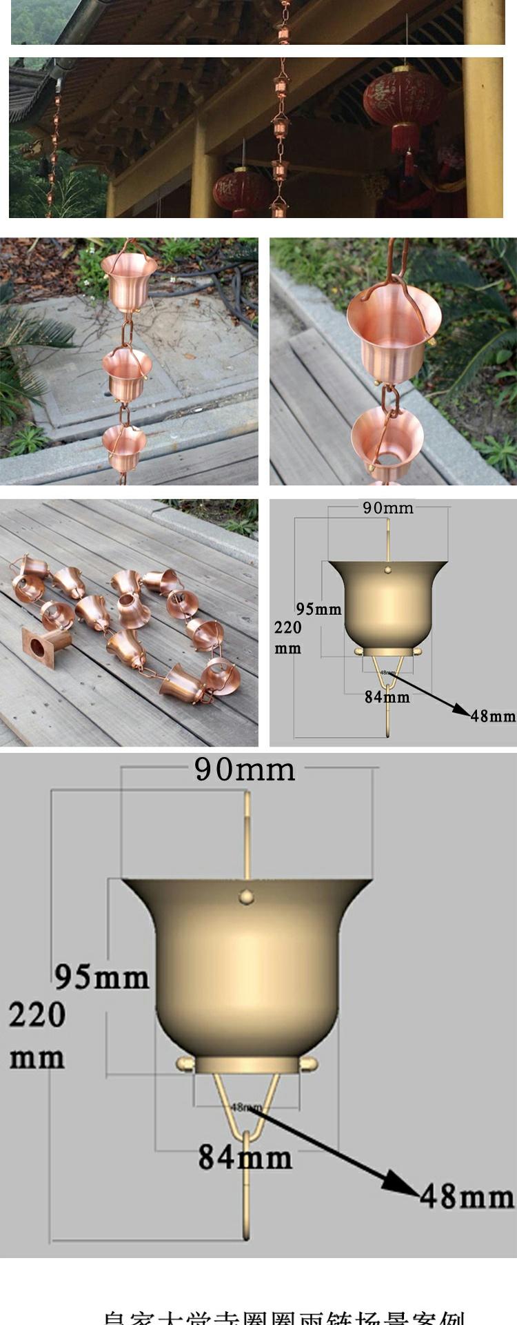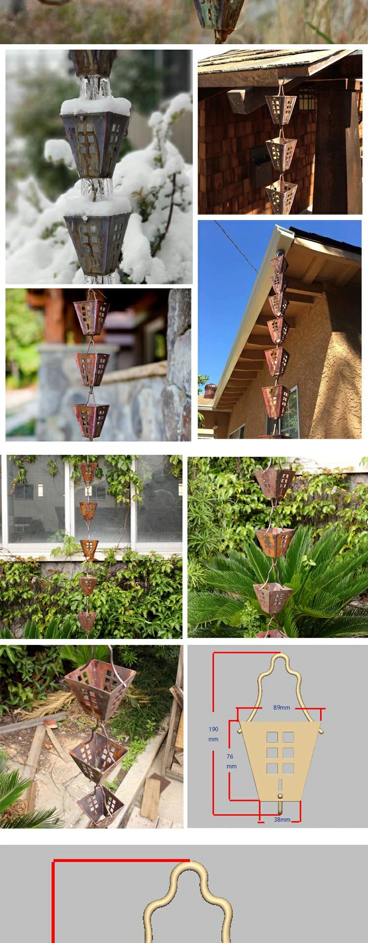 빌라 레인 체인 일본식 처마 비 체인 비 벨 템플 안뜰 붉은 구리 링크 비 떨어지는 빌라 홈통