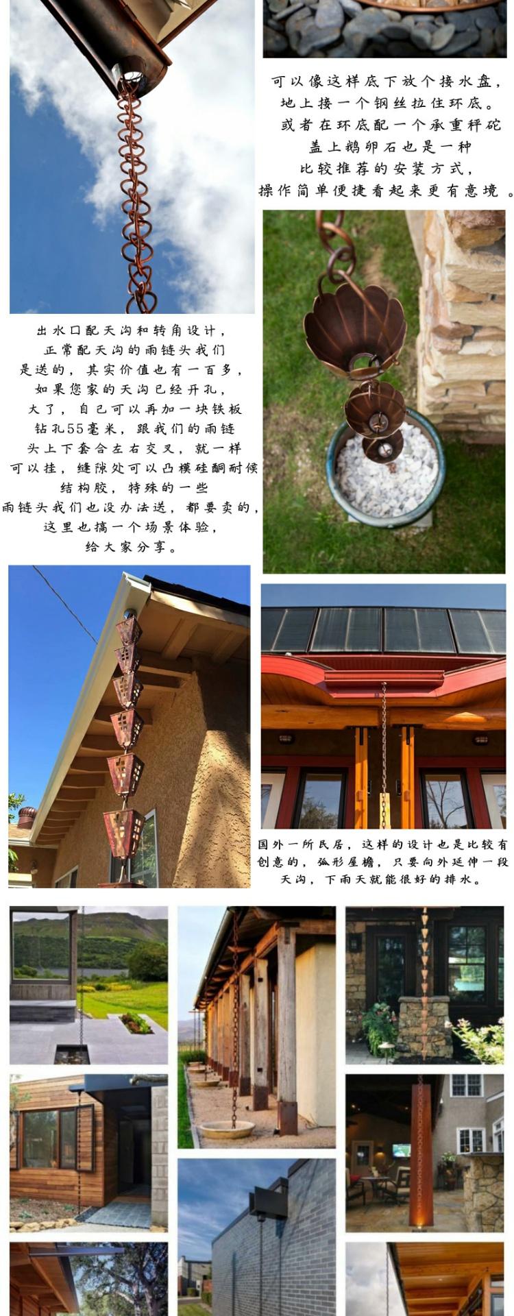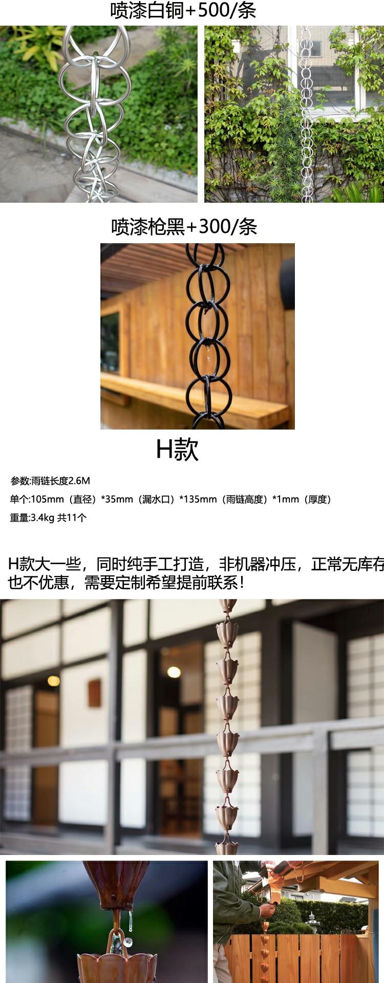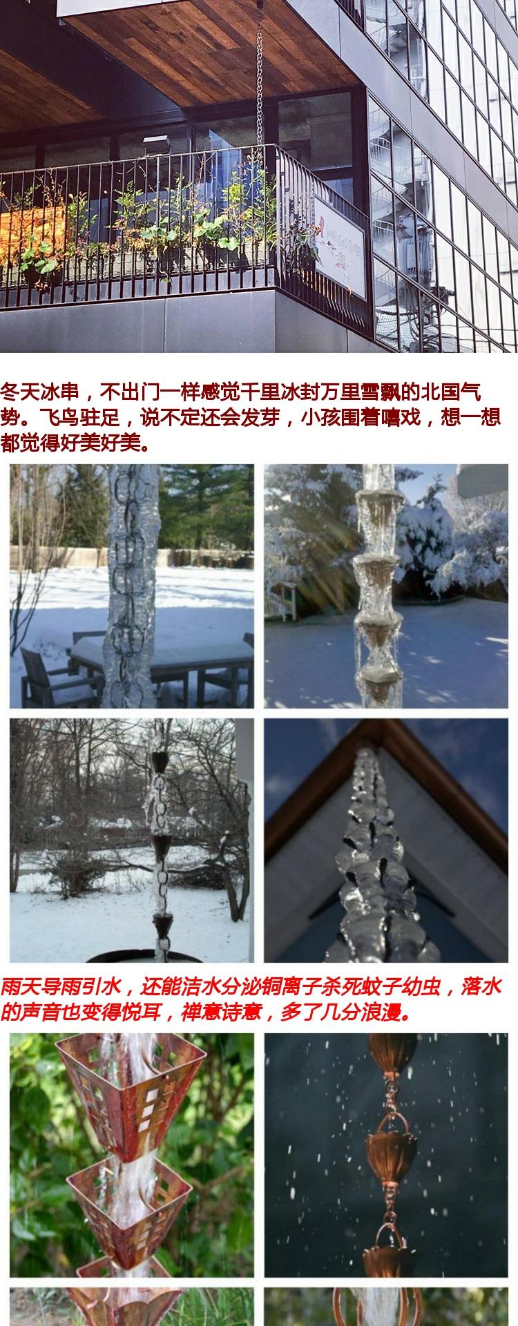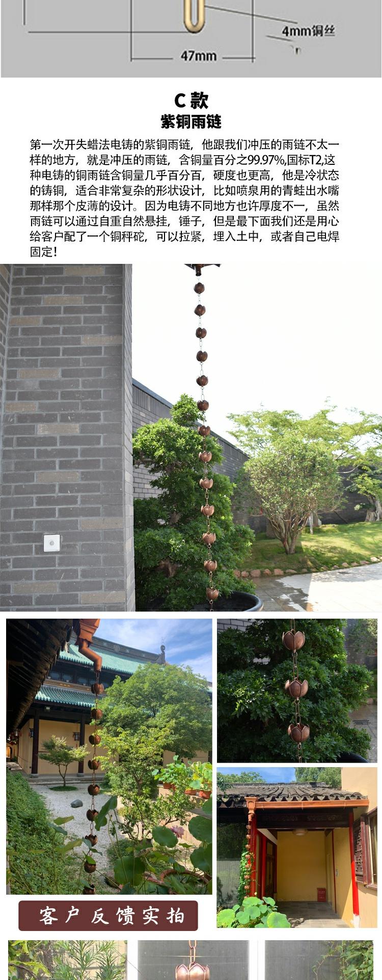 빌라 레인 체인 일본식 처마 비 체인 비 벨 템플 안뜰 붉은 구리 링크 비 떨어지는 빌라 홈통