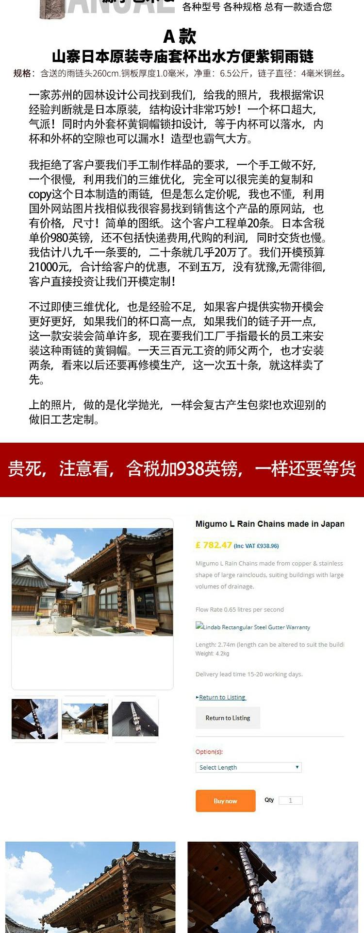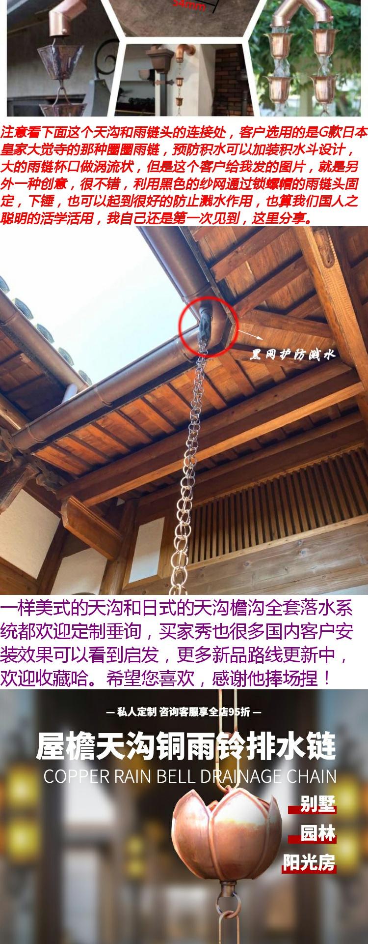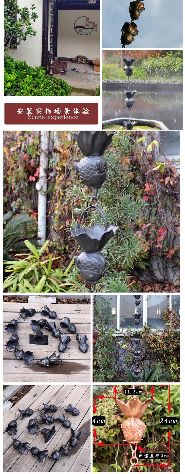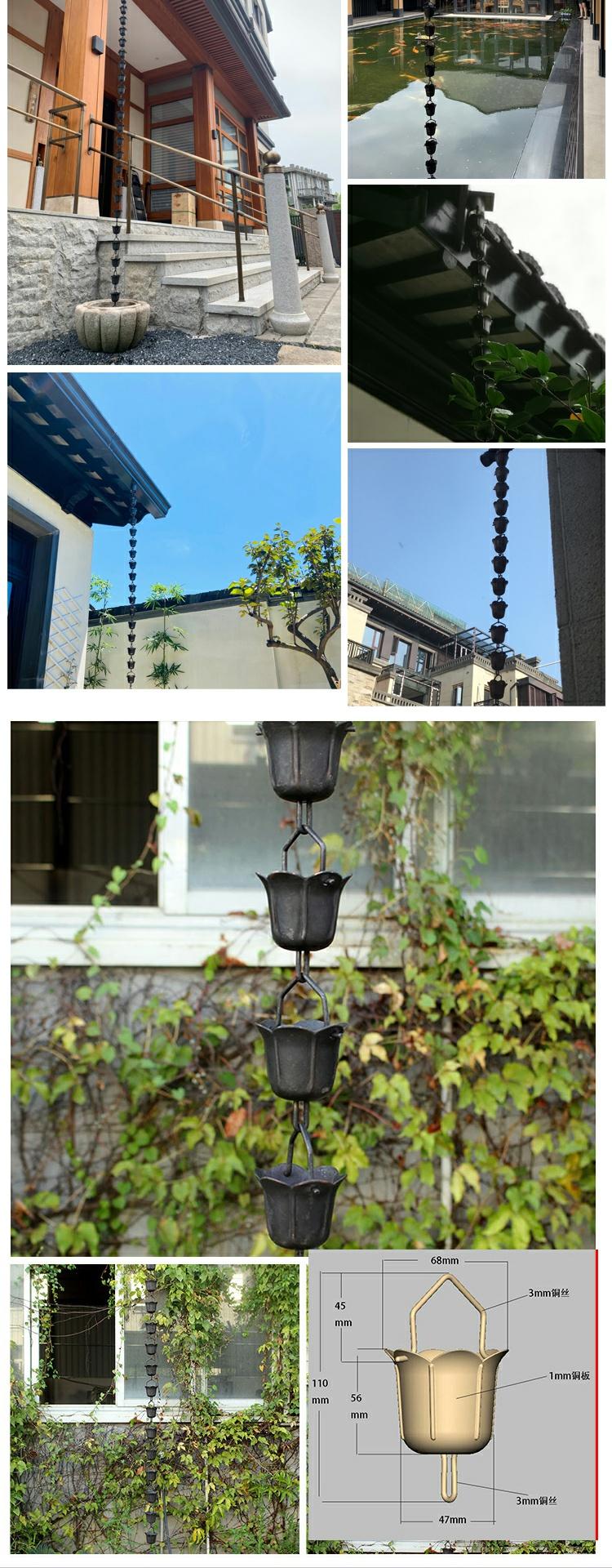 빌라 레인 체인 일본식 처마 비 체인 비 벨 템플 안뜰 붉은 구리 링크 비 떨어지는 빌라 홈통스토어 가기