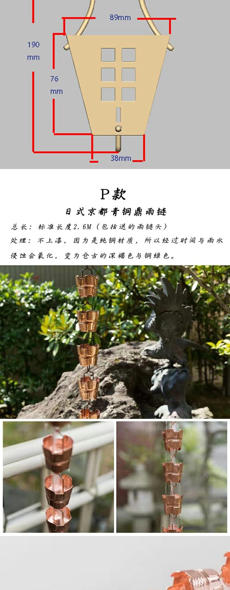• P 유형: 일본식 교토 청동 삼각대 레인 체인 260cm