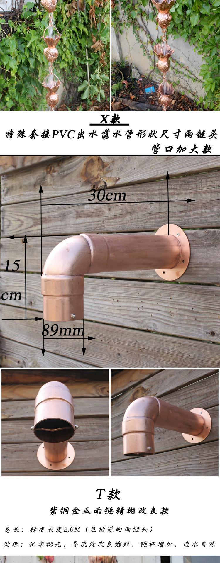 • F 붉은 구리 북유럽 처마 떨어지는 비 사슬 총 길이 260cm