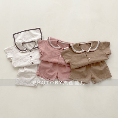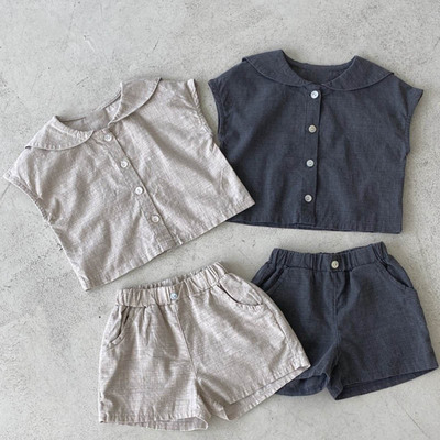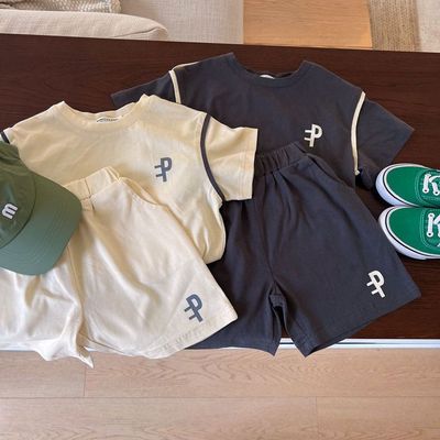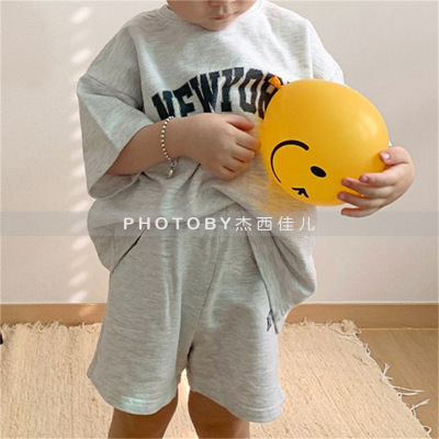 한국 스타일 인스 남녀 아동 여름옷 신상 세트 면 소재 레터링 반팔 반바지 캐주얼 루즈핏 아동 투피스 세트